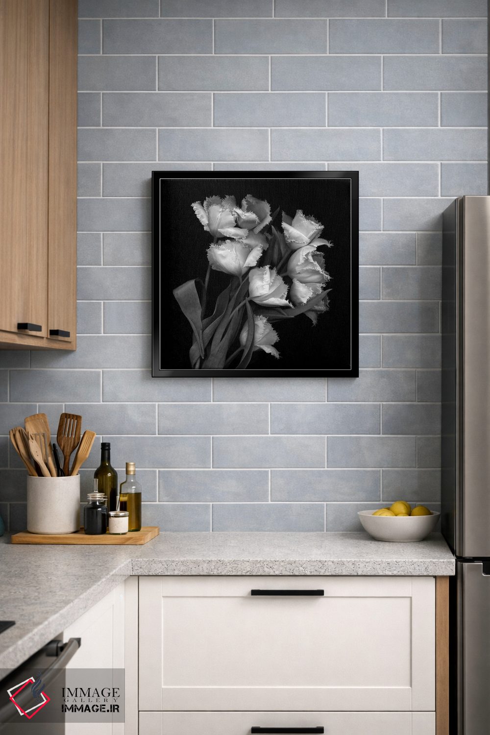 اگر دوست دارید دیوار روشنتر و آرامتر دیده شود، «لالههای پارهپاره (سیاه و سفید)» اثرِ «مگدا ایندیگو» به دیوار، روشناییِ ملایم و دلنشین میدهد، برای هدیه دادن گزینهٔ مناسبیست. همیشه بهروز میماند و با فصلها خوب کنار میآید.