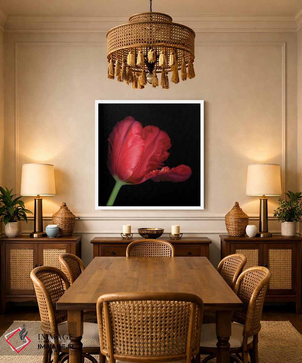 برای دیواری که میخواهید نرمتر دیده شود، «طوطی قرمز ششم» اثرِ «مگدا ایندیگو» چیدمان را از خشکی بیرون میآورد؛ برای هدیه دادن انتخابی خوشسلیقه است. فضا را شلوغ نمیکند؛ فقط لطیفترش میکند.