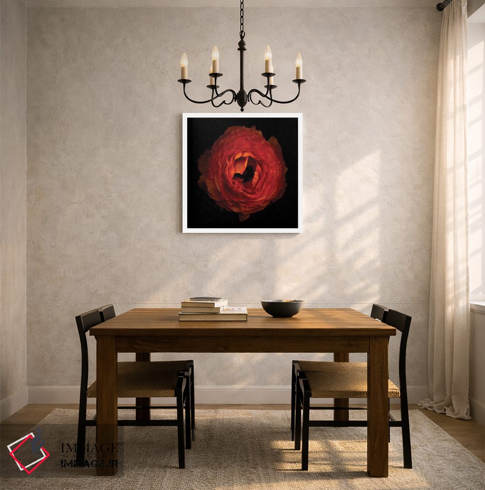 براساس پالت گرم اثر، قاب تیک گرم (چوبی) پیشنهاد اول است و مشکی مات (فریم متوسط) مکمل. برای سفارشهای پروژهای با ابعاد و قابهای اختصاصی با ایماژ در تماس باشید.