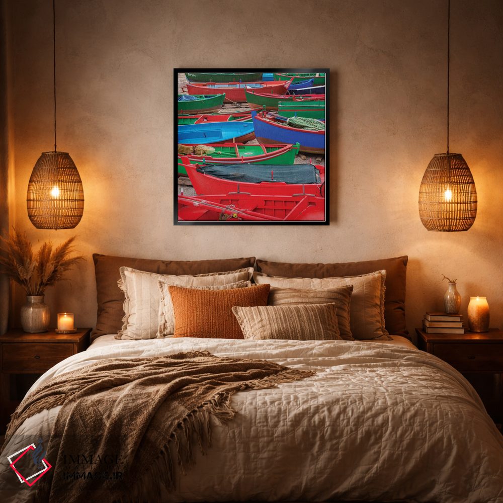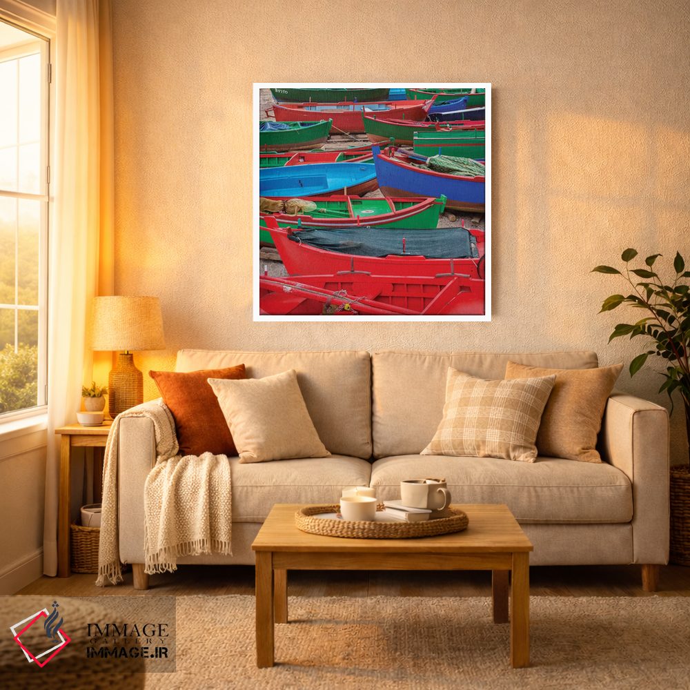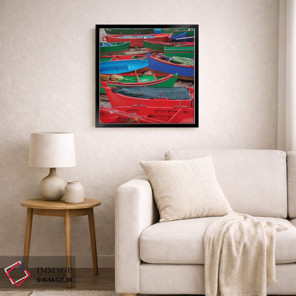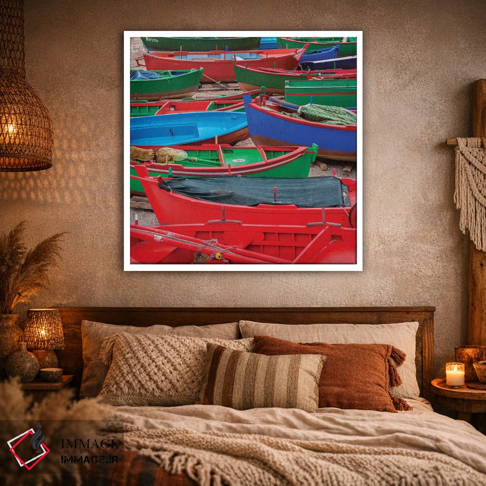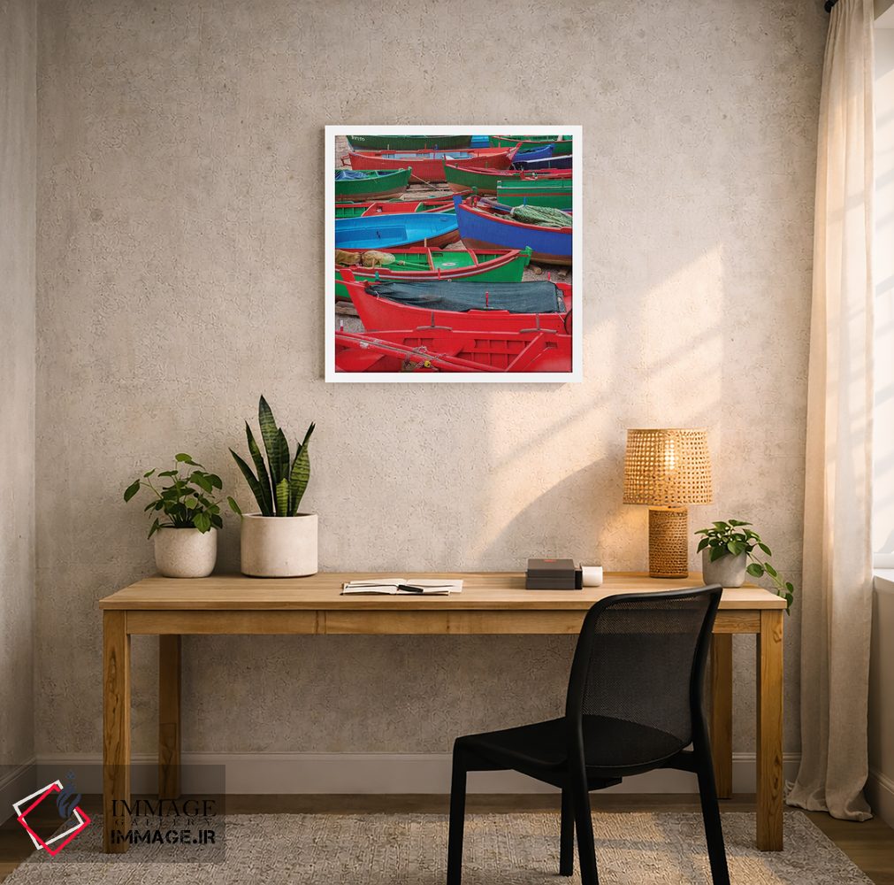 گاهی یک اثر کافیست تا فضا جمعوجور شود؛ «قایقهای وسوسهانگیز» اثرِ «مارکو کارماسی» تضادهای رنگی را خوشقوارهتر میکند؛ برای کنار کتابخانه یا میز کار پیشنهاد میشود. هم از دور چشمگیر است و هم از نزدیک پرداخت دارد.