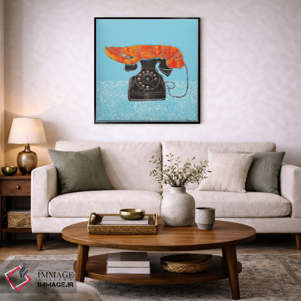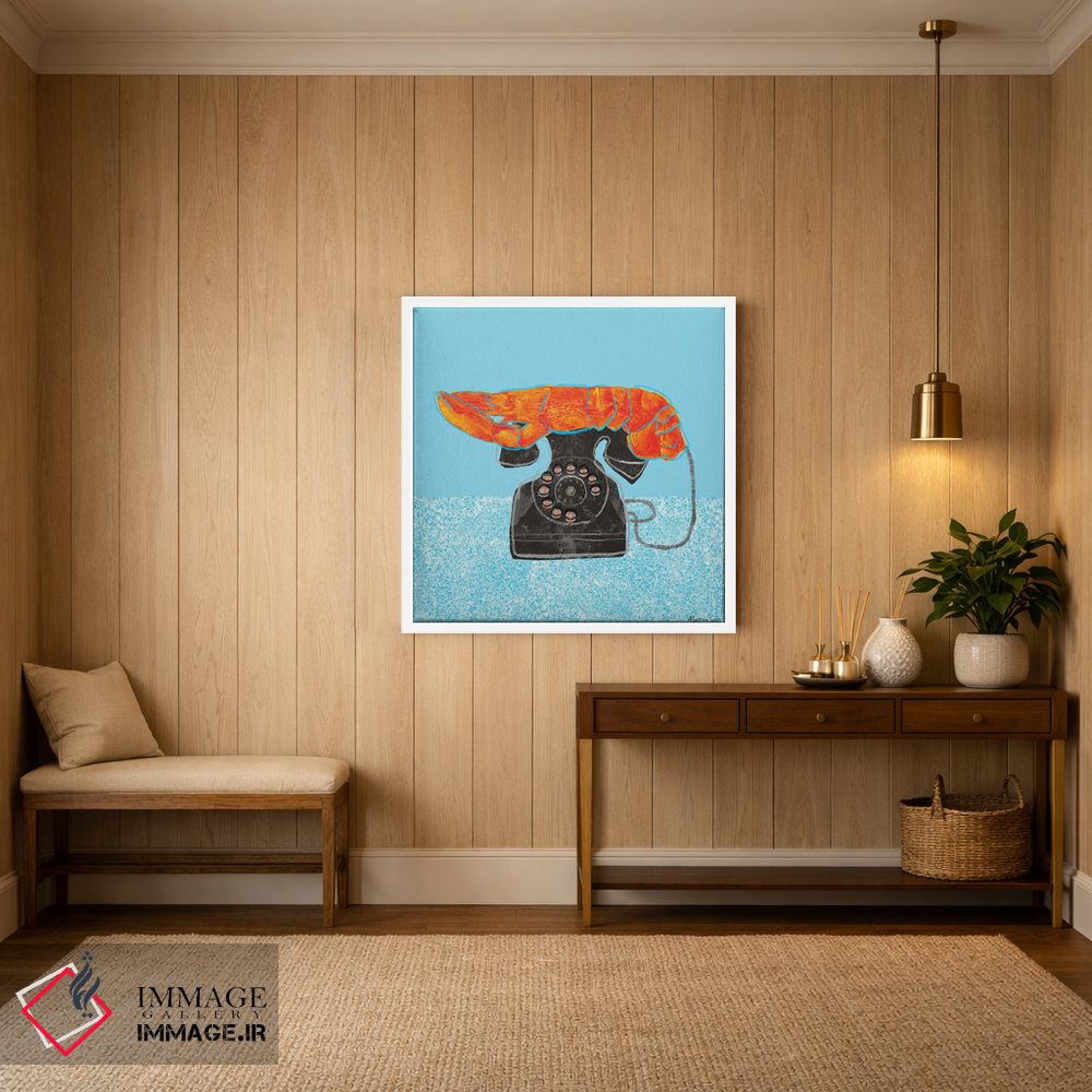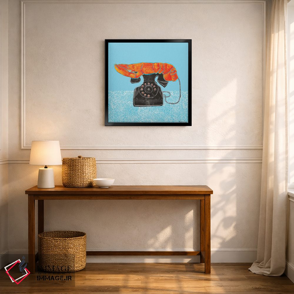 برای دیوارهای ساده، «تلفن خرچنگی» اثرِ «مارتینا اسکات» یک لبخند ریز به چیدمان میدهد؛ برای راهروها و ورودیهای گرم انتخابی خوشسلیقه است. با قاب چوبی یا مشکی، حس مرتبتری پیدا میکند.