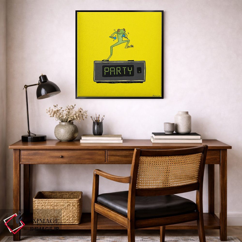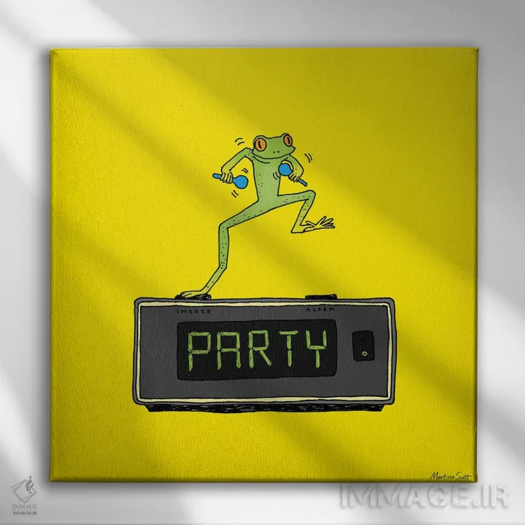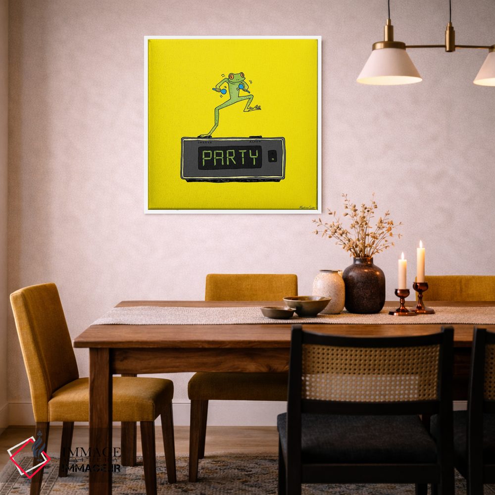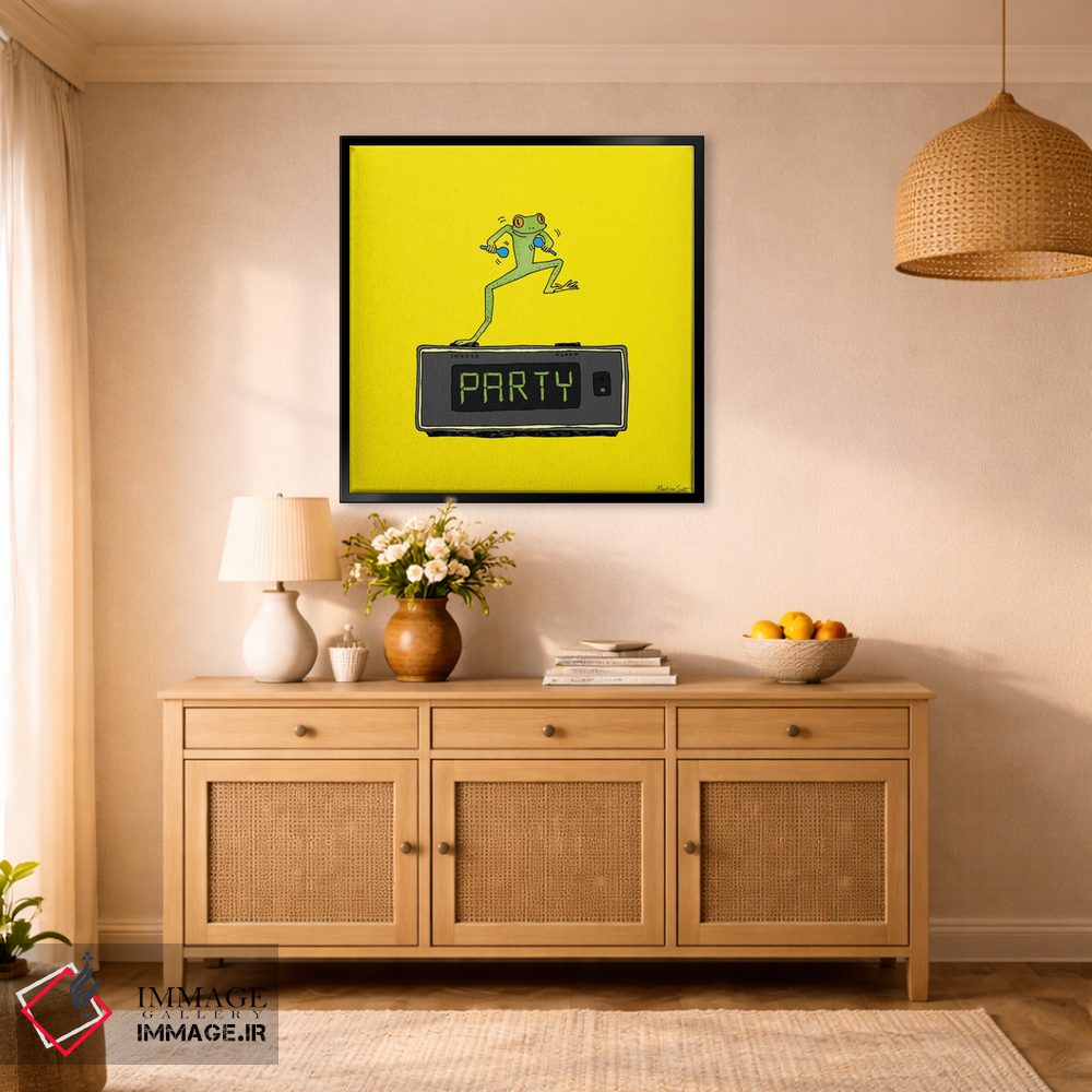 اگر به آثار حیوانات علاقه دارید، «قورباغه مهمانی» اثرِ «مارتینا اسکات» برای دکورهای مینیمال، یک نقطهٔ توجه میسازد، برای اتاق بازی یا گوشهٔ مطالعه گزینهٔ مناسبیست. با قاب چوبی یا مشکی، حس مرتبتری پیدا میکند.