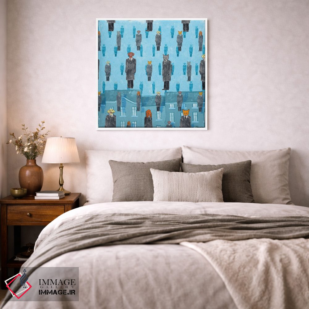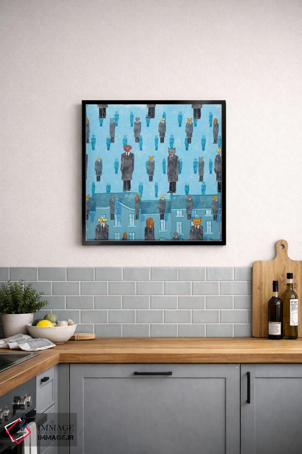 اگر به معماری و جزئیات سازه علاقه دارید، «گربهها و سگهای رنه (نام خاص)» اثرِ «مارتینا اسکات» به دیوار، ریتم معماری اضافه کند، برای اتاق کار گزینهٔ مناسبیست. با نورپردازی خطی، خطوط اثر خواناتر هم میشود.