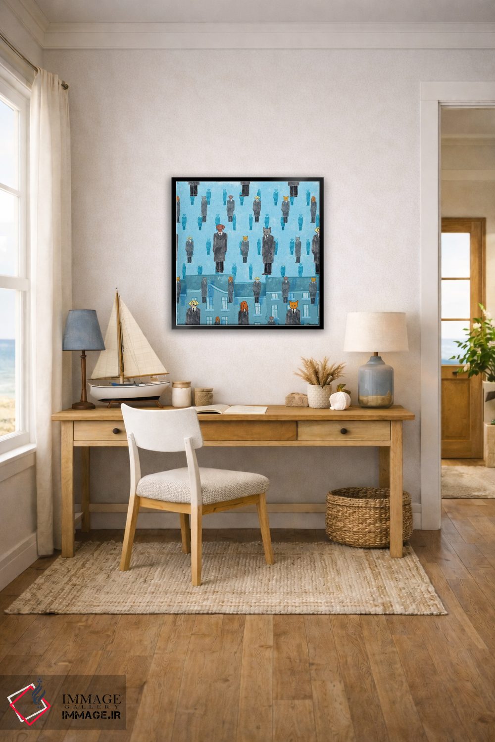 براساس پالت ترکیبی اثر، قاب تیک گرم (چوبی) پیشنهاد اول است و مشکی مات (فریم متوسط) مکمل. برای سفارشهای پروژهای با ابعاد و قابهای اختصاصی با ایماژ در تماس باشید.
