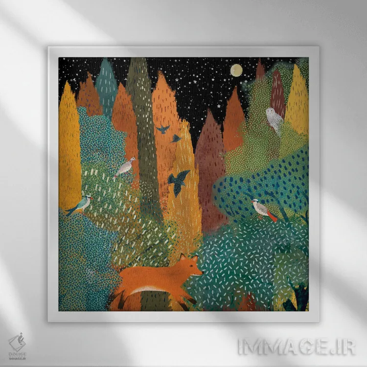 براساس پالت ترکیبی اثر، قاب تیک گرم (چوبی) پیشنهاد اول است و مشکی مات (فریم متوسط) مکمل. برای سفارشهای پروژهای با ابعاد و قابهای اختصاصی با ایماژ در تماس باشید.