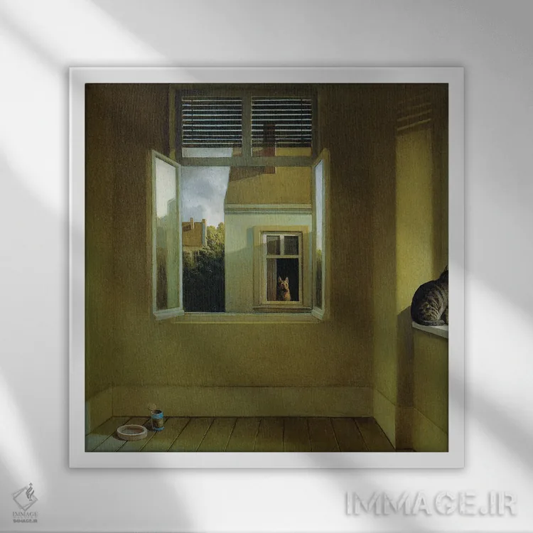 براساس پالت ترکیبی اثر، قاب بلوط روشن (چوبی) پیشنهاد اول است و استخوانی ملایم مکمل. برای سفارشهای پروژهای با ابعاد و قابهای اختصاصی با ایماژ در تماس باشید.