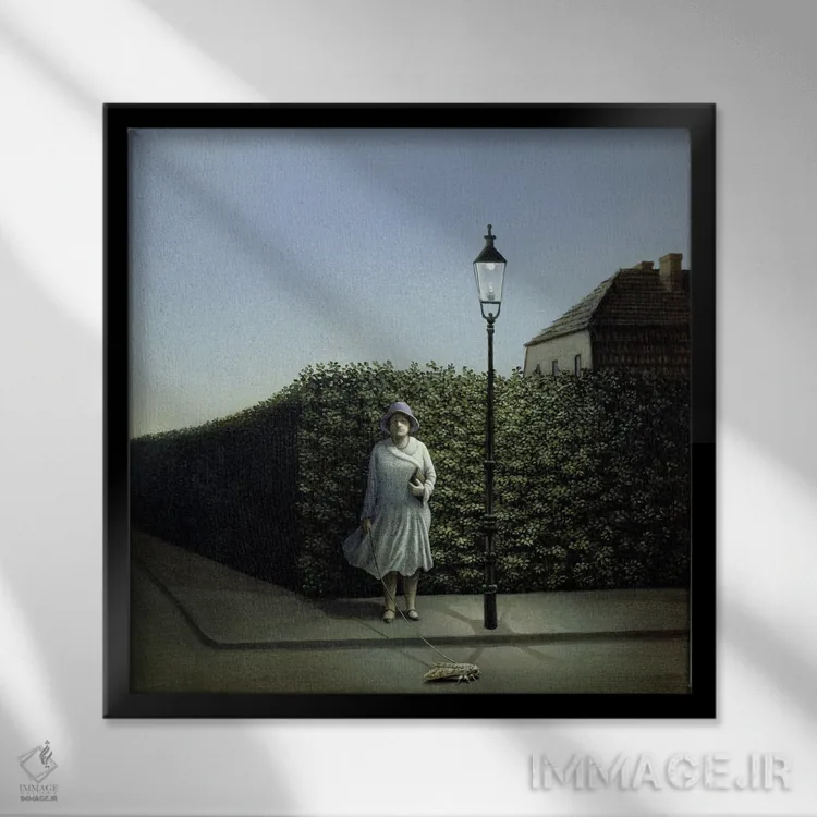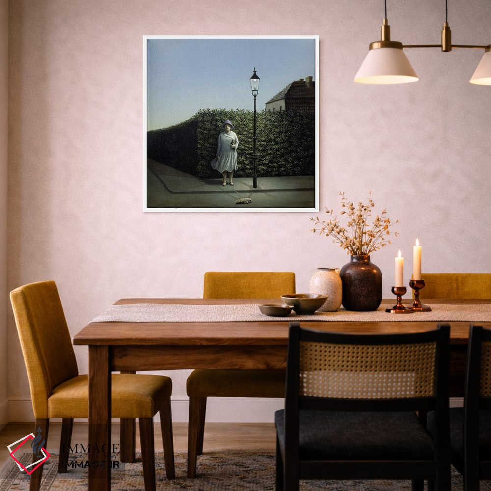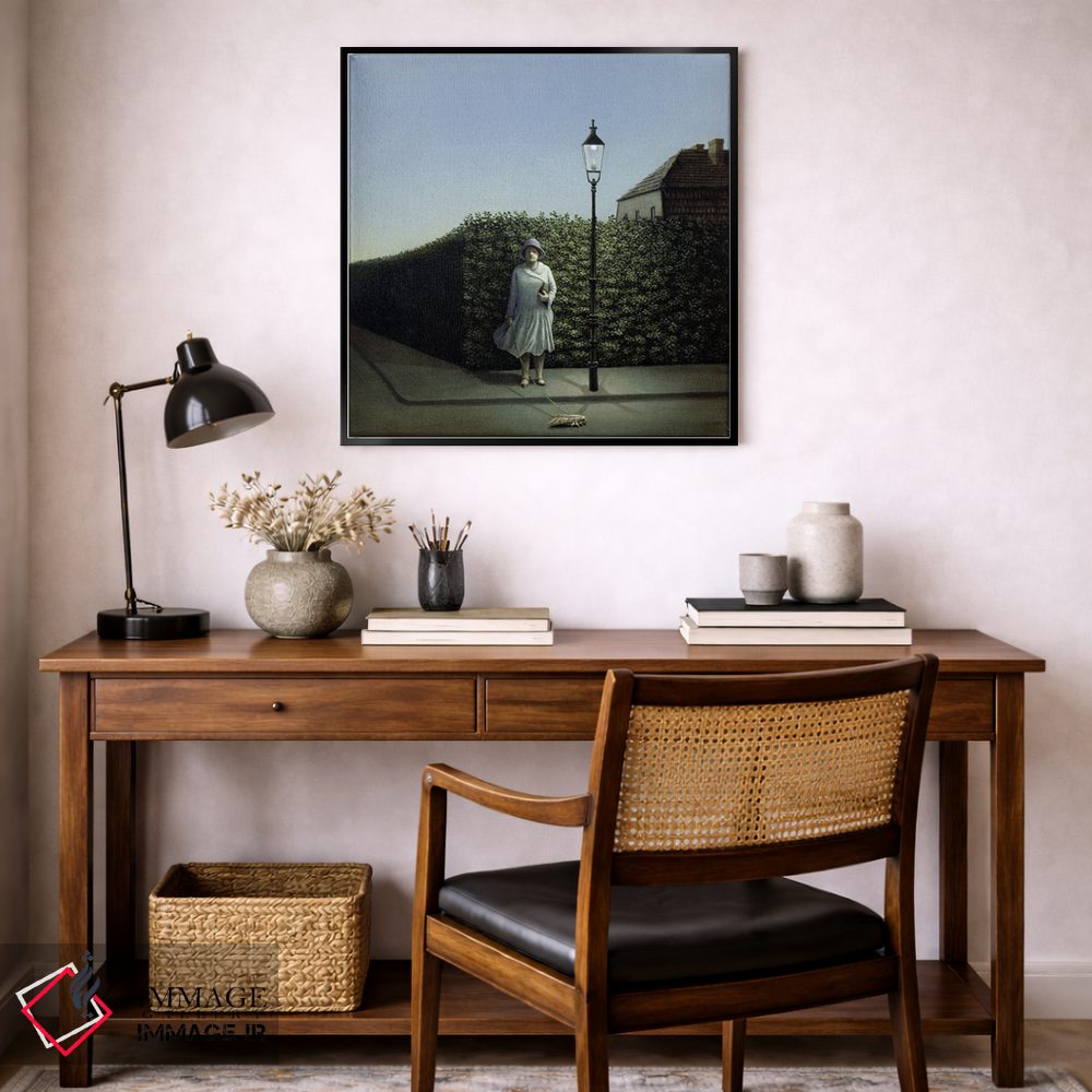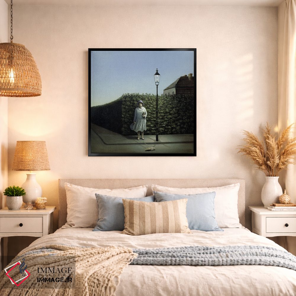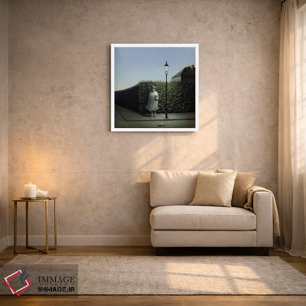 براساس پالت سرد اثر، قاب بلوط روشن (چوبی) پیشنهاد اول است و استخوانی ملایم مکمل. برای سفارشهای پروژهای با ابعاد و قابهای اختصاصی با ایماژ در تماس باشید.