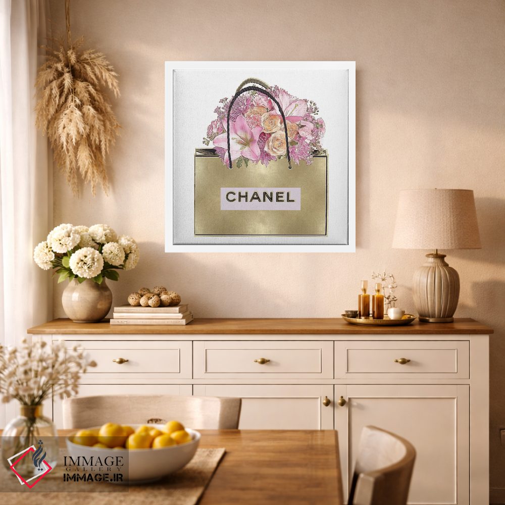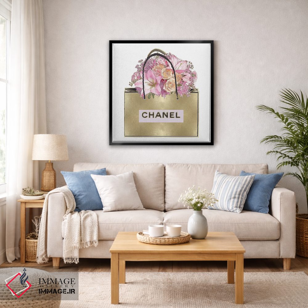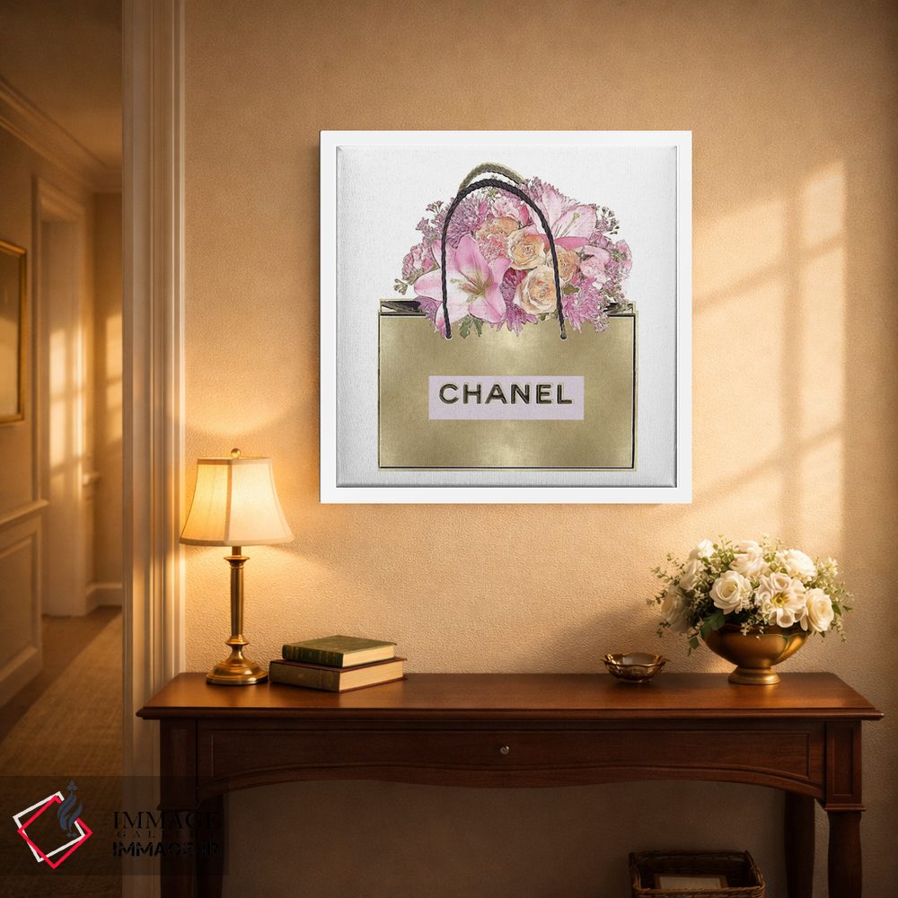 اگر دکور شما به یک لهجهی فشن و مدرن نیاز دارد، «کیف طلایی با دستهگل صورتی» اثرِ «مدلین بلیک» را ببینید.