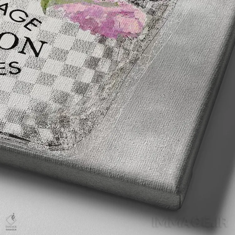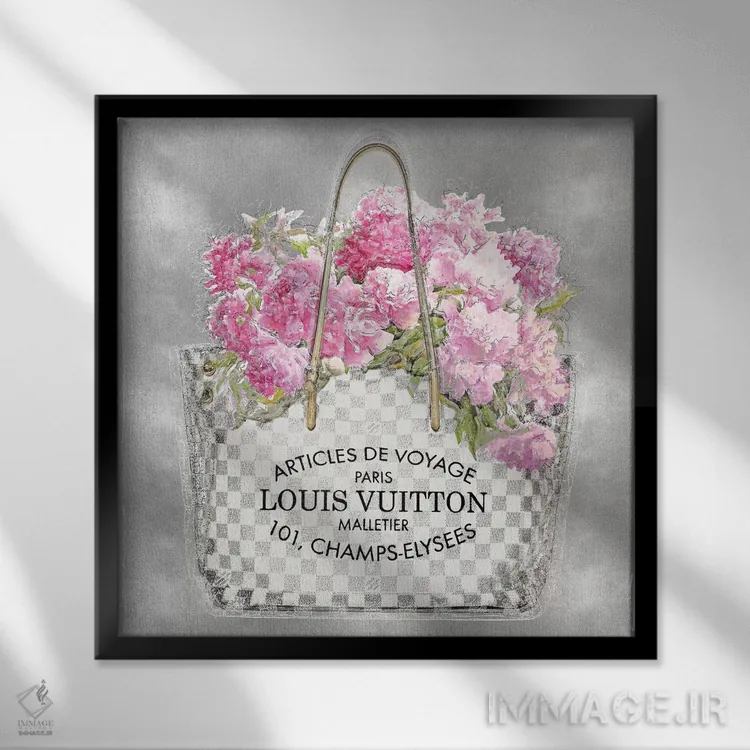 تابلو دکوراتیو دسته گل صورتی روی زمینه نقره ای اثر مدلین بلیک