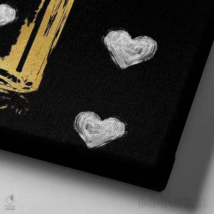 تابلو دکوراتیو قلب های نقره ای روی زمینه مشکی اثر مدلین بلیک