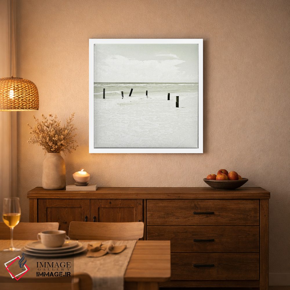 براساس پالت خنثی اثر، قاب بلوط روشن (چوبی) پیشنهاد اول است و استخوانی ملایم مکمل. برای سفارشهای پروژهای با ابعاد و قابهای اختصاصی با ایماژ در تماس باشید.