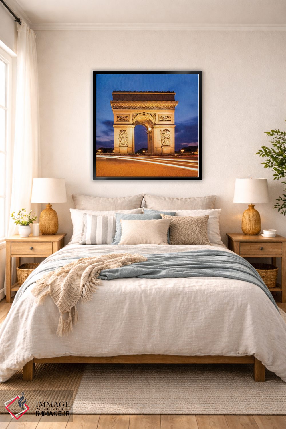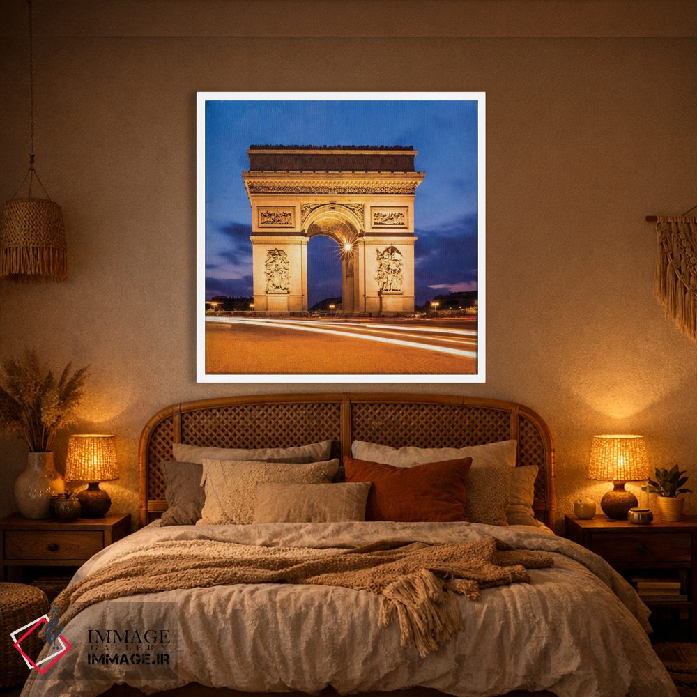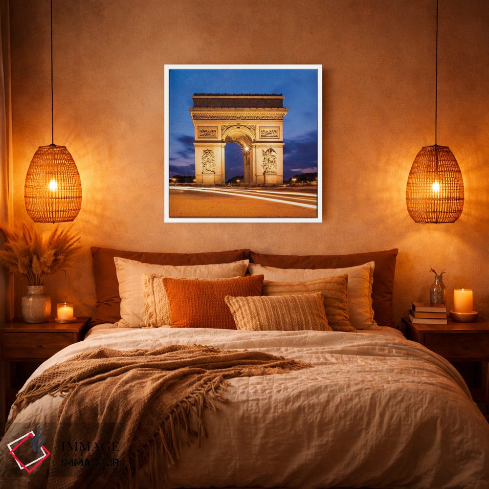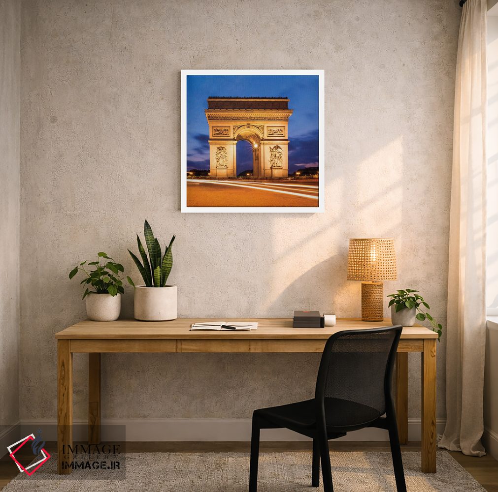 این تابلو با عنوان «پاریس در شب؛ طاق پیروزی» اثرِ «ملانی ویولا» دیوار را از تزئین به «حضور» تبدیل میکند؛ برای فضاهای کمنور که به «نقطهٔ روشن» نیاز دارند پیشنهاد میشود. اگر دنبال زیباییِ بیادعا هستید، این اثر درست مینشیند.