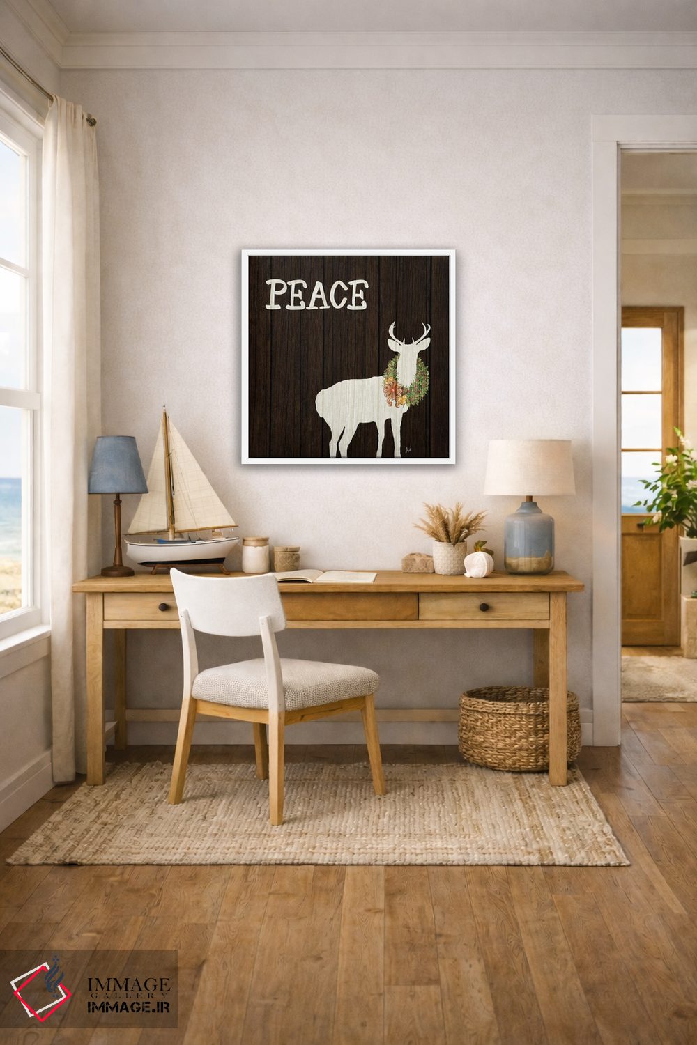 برای اتاقی که به یک عنصر دوستداشتنی نیاز دارد، «گوزن چوبی با تاج گل ۲» اثرِ «اندی متز» به دیوار، انرژیِ نرم و زنده میدهد؛ برای فضاهای روستیک یا بوهو انتخابی خوشسلیقه است. به دیوار، قصه میدهد—اما قصهای آرام و شیک.