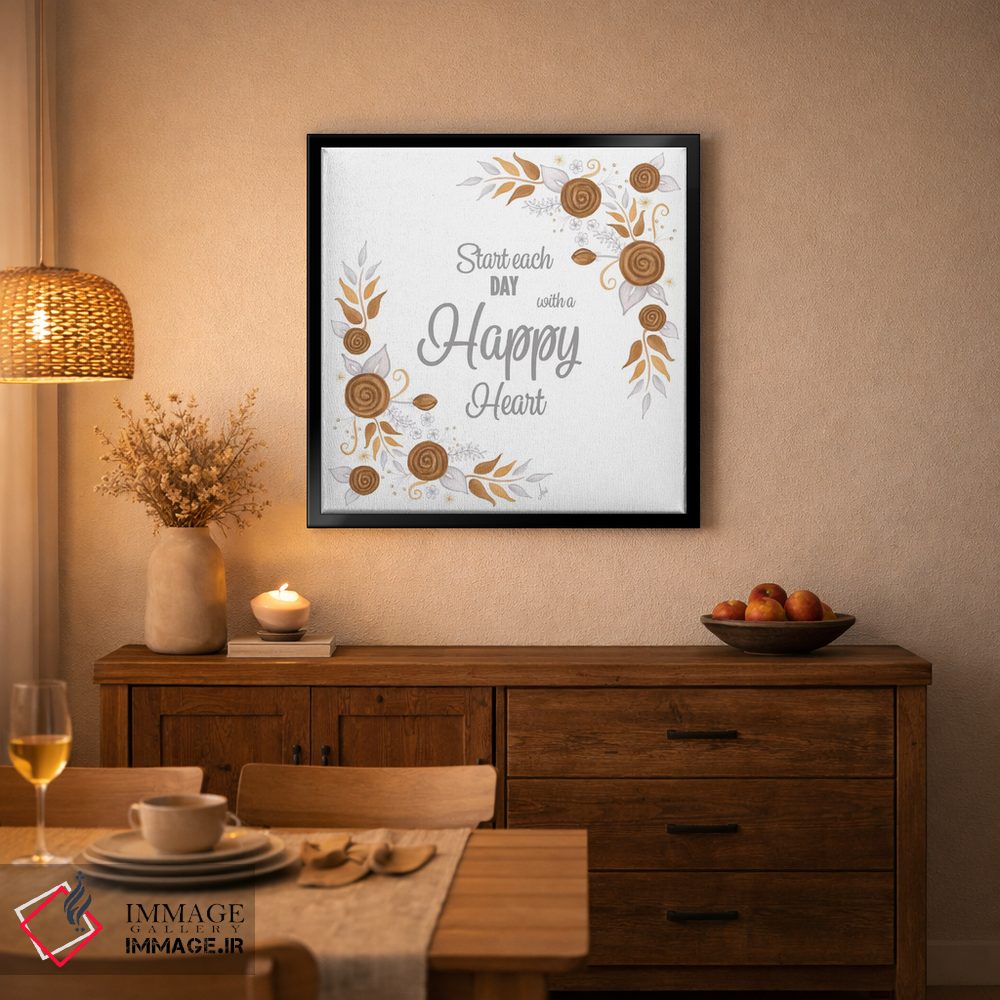 براساس پالت گرم اثر، قاب تیک گرم (چوبی) پیشنهاد اول است و مشکی مات (فریم متوسط) مکمل. برای سفارشهای پروژهای با ابعاد و قابهای اختصاصی با ایماژ در تماس باشید.