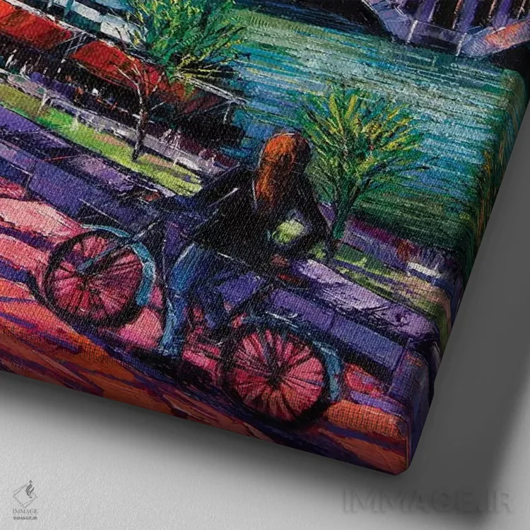 بوم گالری ایماژ نسخهی دکوراتیوِ سطحبالا از یک اثر هنری است؛ روی کنواس سفیدِ یکدست و بدون اسید با فرآیند چاپ حرفهای جیکلی (Giclée) و کنترل دقیق تونها با جوهرهای آرشیویِ حرفهای برای لایههای رنگی خواناتر؛ حس نهایی نزدیکتر به ارائهی گالریوار است؛ نه صرفاً یک تصویر. تابلو پس از آمادهسازی روی کلاف کشیده میشود و نصب آن ساده و بیدردسر است.