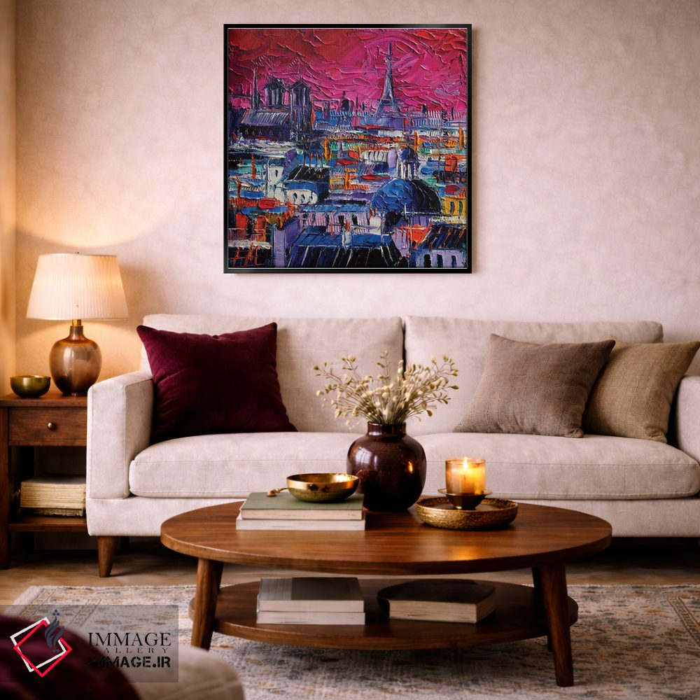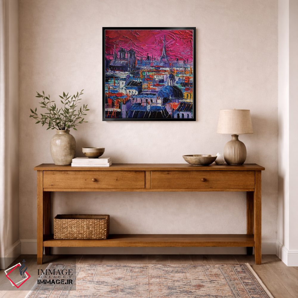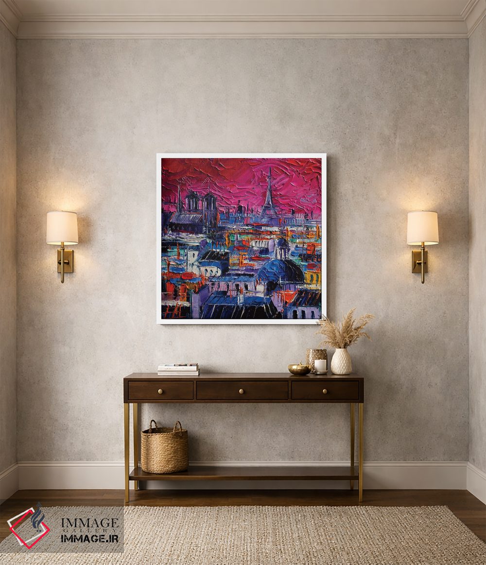 برای دکورهای ساختارمند و مدرن، «پشتبامهای پاریسی» اثرِ «مونا ادولسکو» یک زیباییِ دقیق و حرفهای بسازد؛ برای راهروهای شیک انتخابی خوشسلیقه است. با قاب مشکی مات، جلوهٔ تمیزتری پیدا میکند.