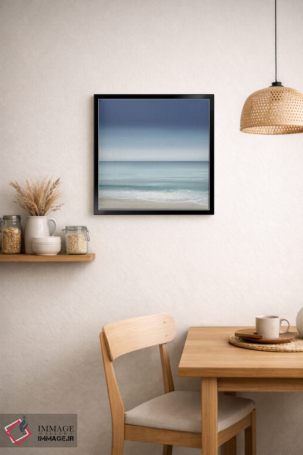 براساس پالت سرد اثر، قاب سفید مات (فریم باریک) پیشنهاد اول است و نقرهای برسخورده (متالیک) مکمل. برای سفارشهای پروژهای با ابعاد و قابهای اختصاصی با ایماژ در تماس باشید.