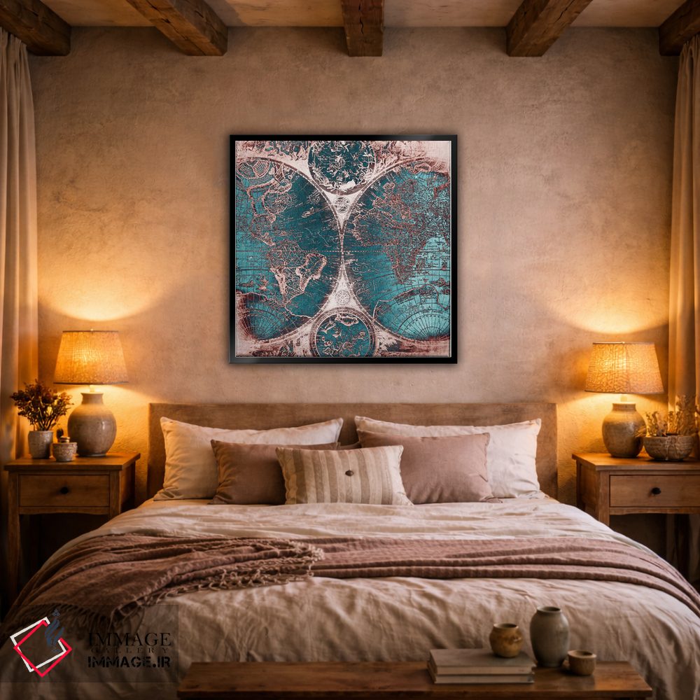 «نقشه جهان عتیقه IV» اثرِ «نیچر مجیک (برند یا استودیوی هنری)» با حسِ این اثر، یک انتخاب دلنشین برای نرمتر کردن فضای خانه و اضافهکردن لطافت به دیوارهاست.