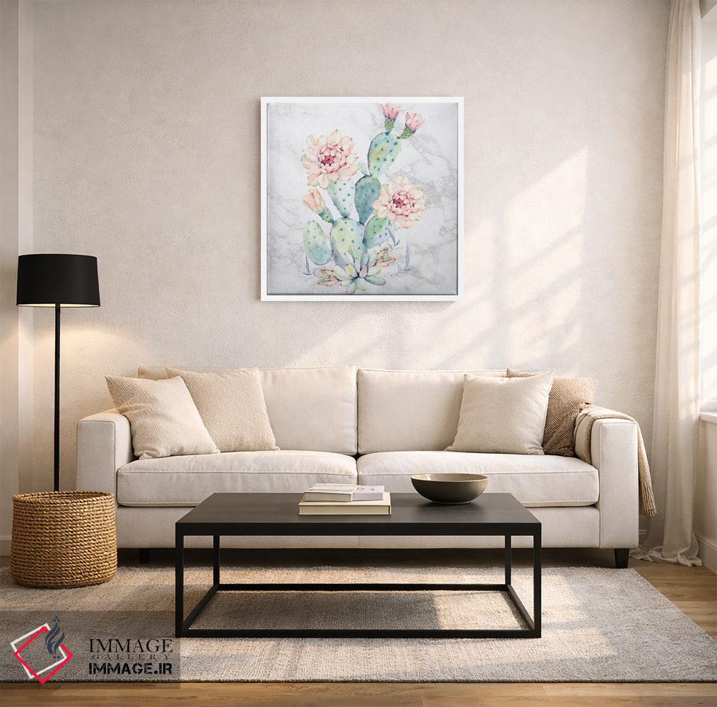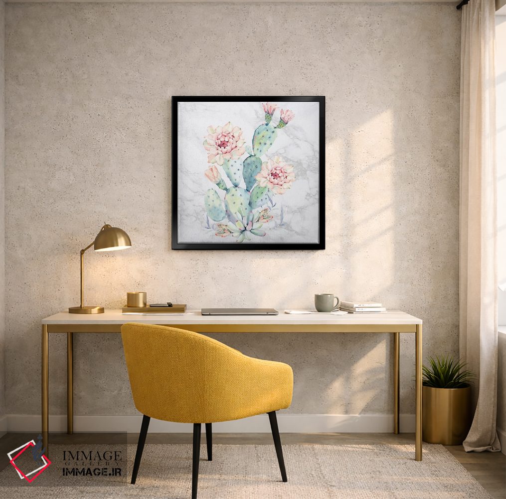«آبرنگ گل کاکتوس روی مرمر» اثرِ «نیچر مجیک (برند یا استودیوی هنری)» مثل یک نفس تازه است؛ تعادل رنگیِ لطیفی به چیدمان میدهد؛ برای فضاهای بوهمی انتخابی خوشسلیقه است. با قاب روشن یا چوبی، حس طبیعیتری پیدا میکند.