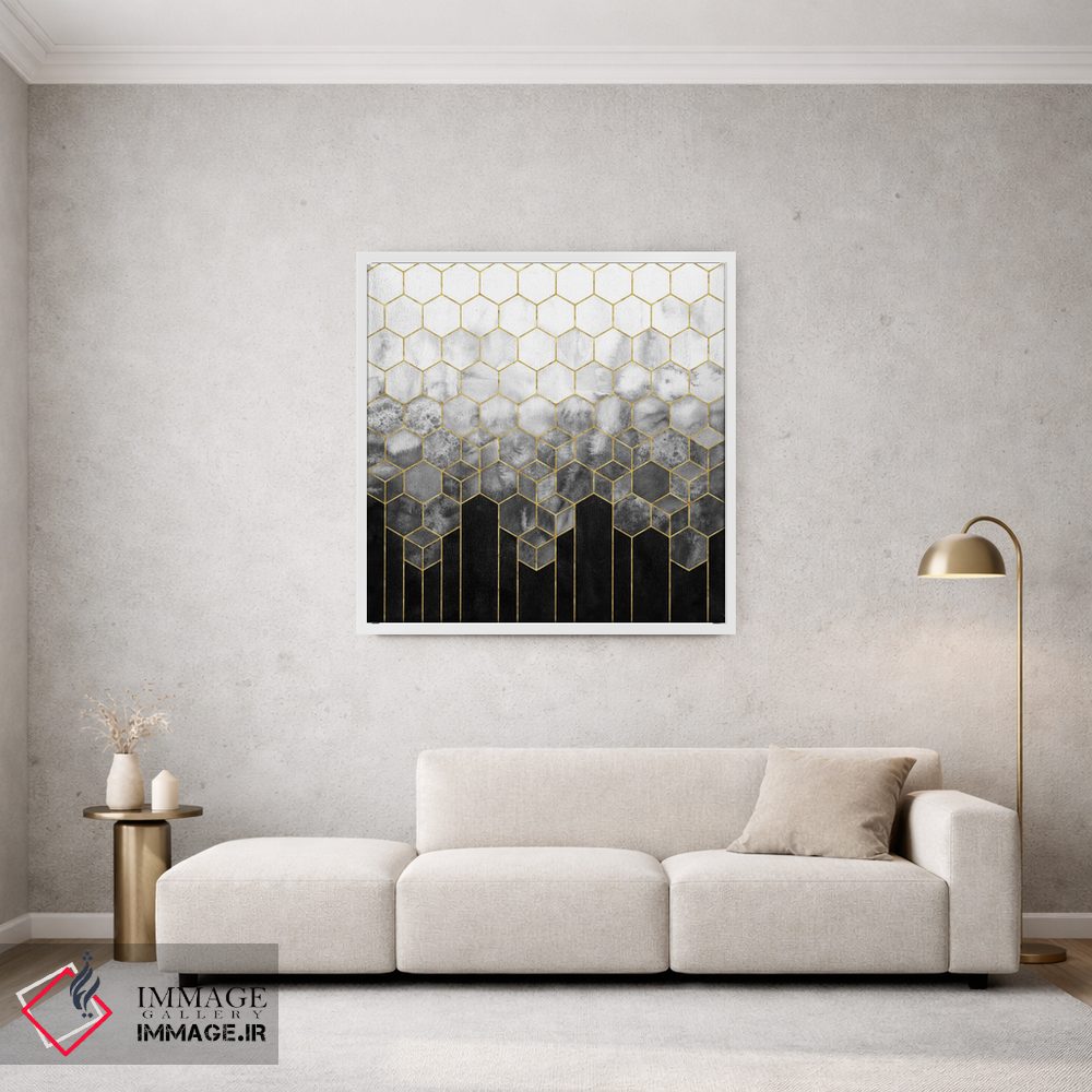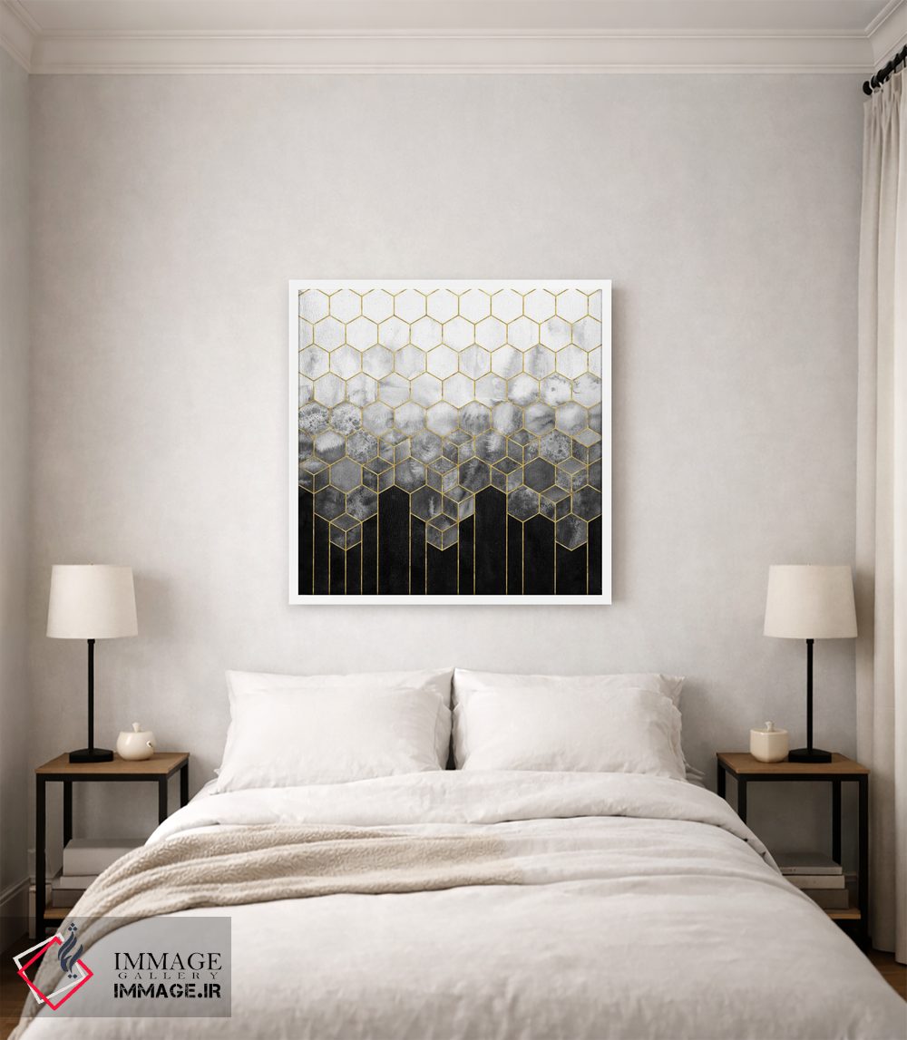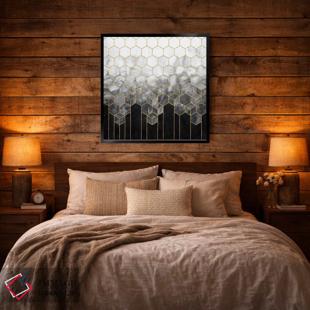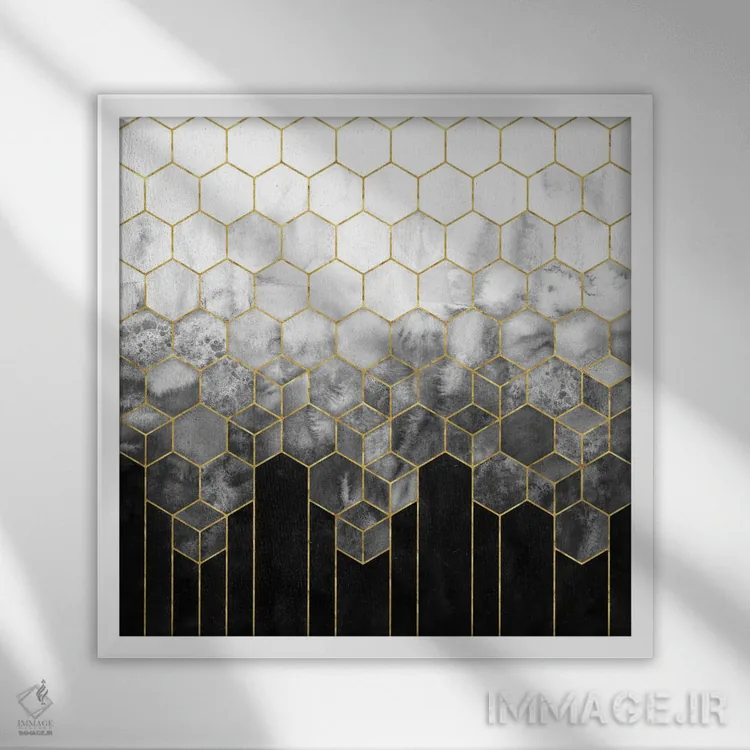 تابلو انتزاعی انتزاعی شش ضلعی هندسی مشکی و طلایی اثر نیچر مجیک