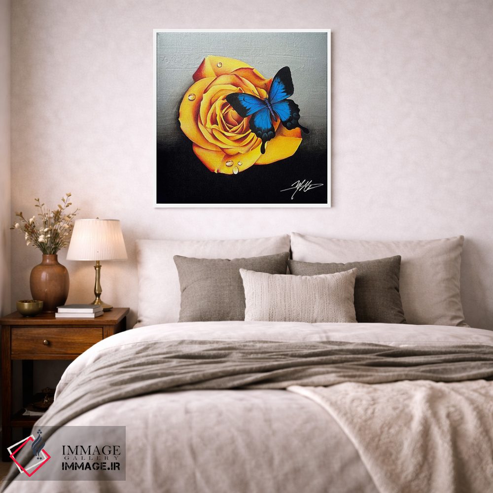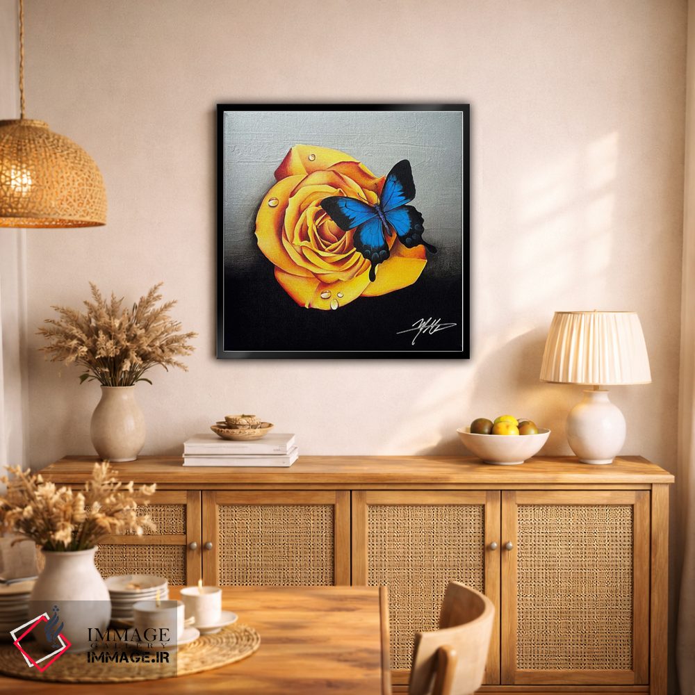 اگر به دکورهای طبیعی علاقه دارید، «رز و پروانه» اثرِ «مایکل گلدزوایگ» برای دیوارهای ساده، یک لطافتِ دقیق میسازد، برای راهروهای مینیمال گزینهٔ مناسبیست. همیشه بهروز میماند و با فصلها خوب کنار میآید.