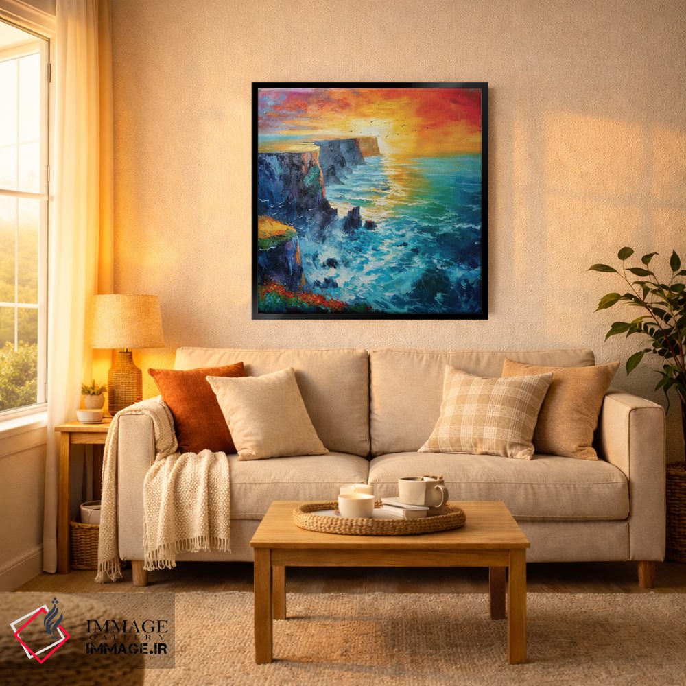 تابلو دکوراتیو غروب با رنگ نارنجی سوخته اثر کانر مک گوایر - نمای پرسپکتیو محصول