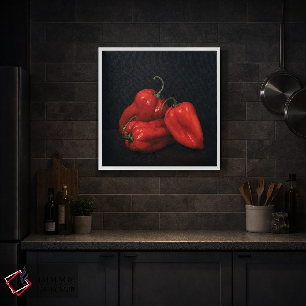 براساس پالت گرم اثر، قاب تیک گرم (چوبی) پیشنهاد اول است و مشکی مات (فریم متوسط) مکمل. برای سفارشهای پروژهای با ابعاد و قابهای اختصاصی با ایماژ در تماس باشید.