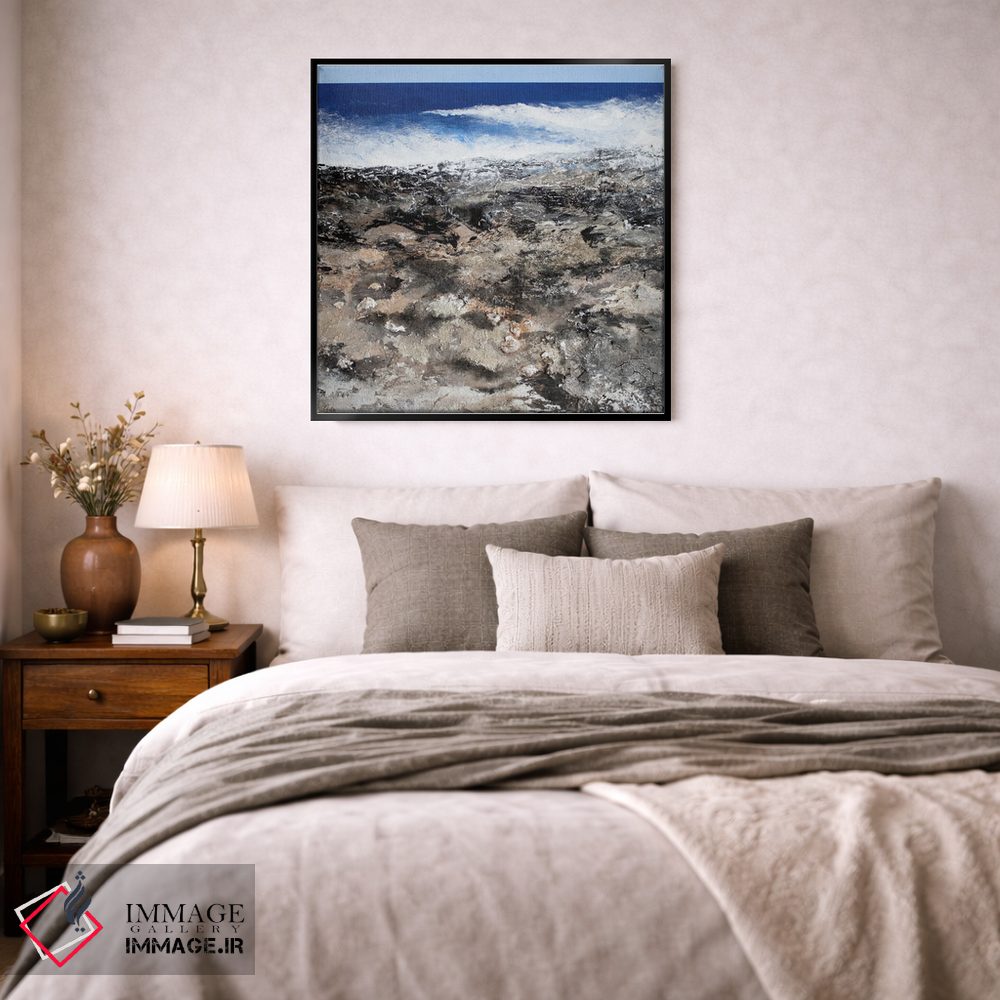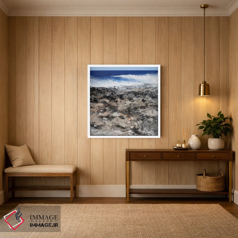 براساس پالت سرد اثر، قاب بلوط روشن (چوبی) پیشنهاد اول است و استخوانی ملایم مکمل. برای سفارشهای پروژهای با ابعاد و قابهای اختصاصی با ایماژ در تماس باشید.