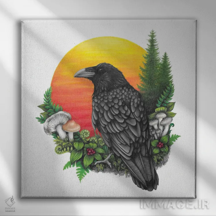 تابلو دکوراتیو کلاغ و خورشید اثر مندی هک