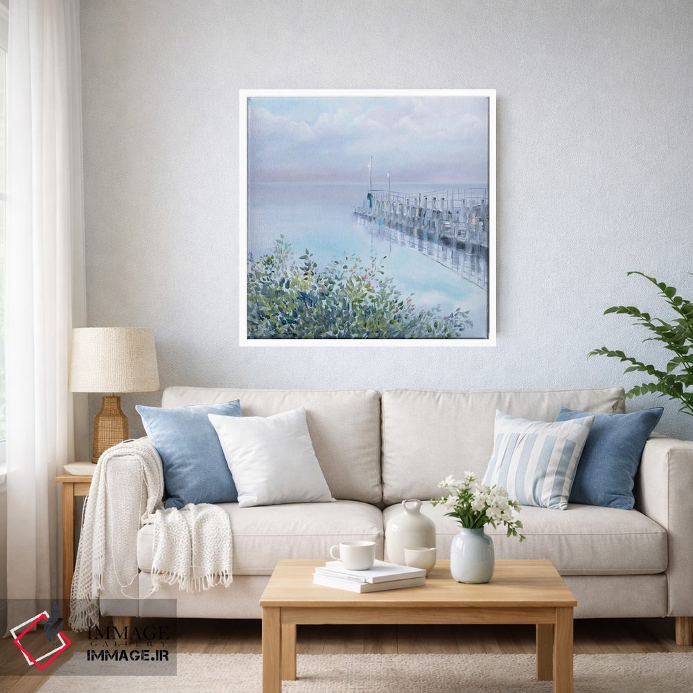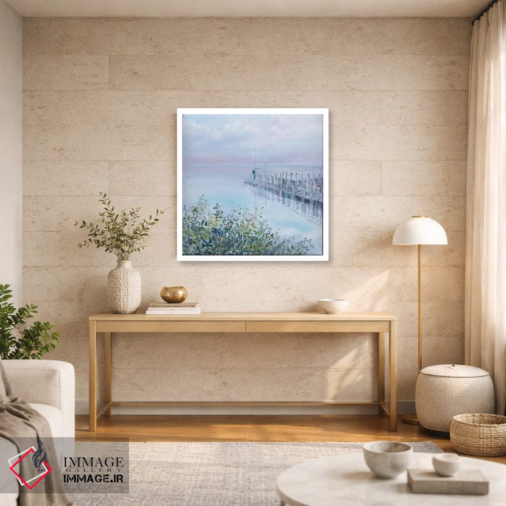 براساس پالت سرد اثر، قاب سفید مات (فریم باریک) پیشنهاد اول است و نقرهای برسخورده (متالیک) مکمل. برای سفارشهای پروژهای با ابعاد و قابهای اختصاصی با ایماژ در تماس باشید.