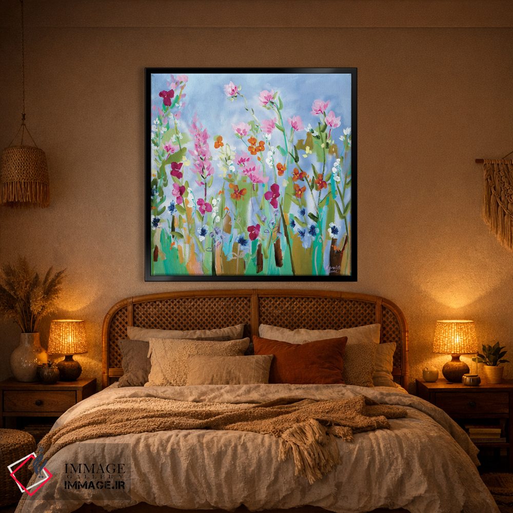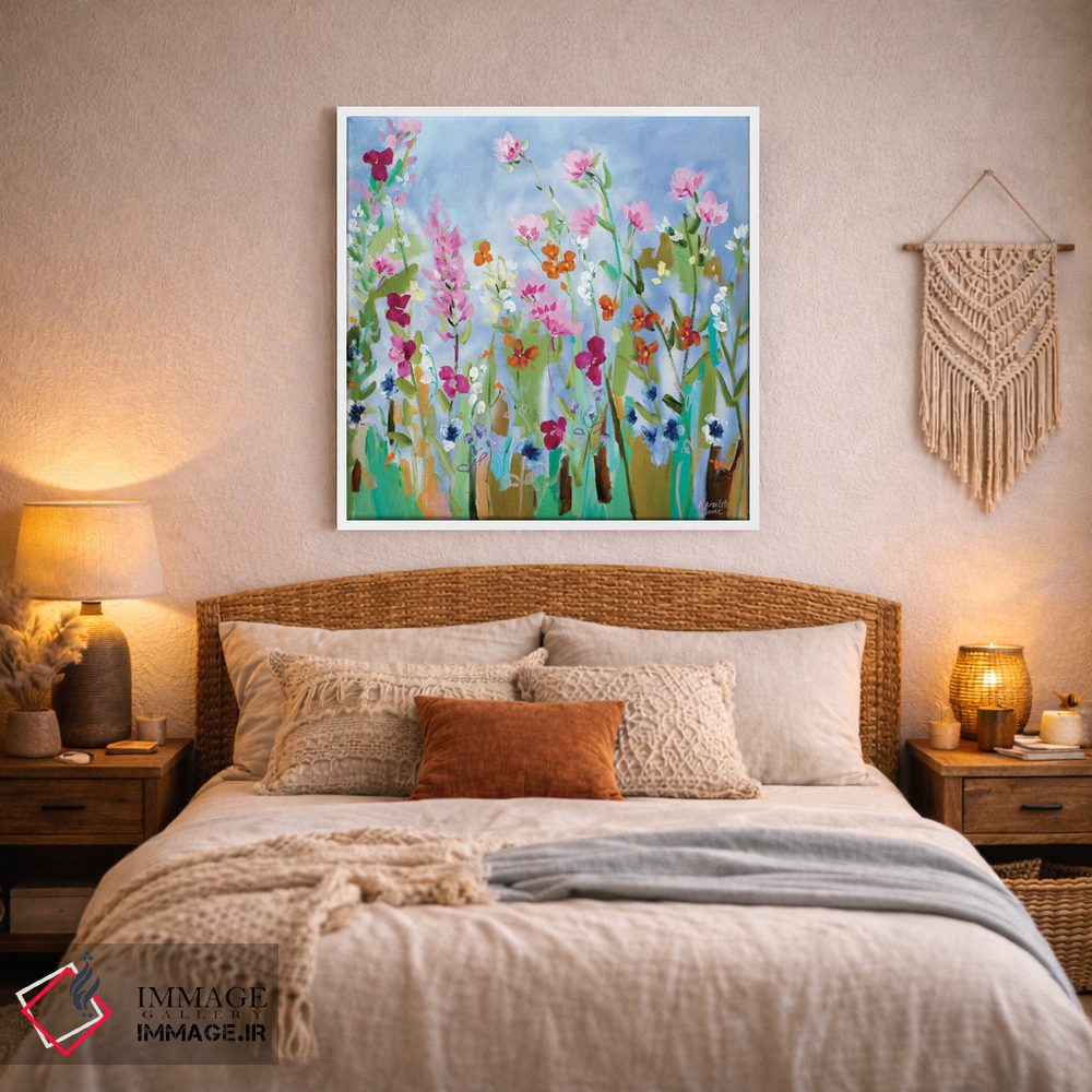 براساس پالت ترکیبی اثر، قاب تیک گرم (چوبی) پیشنهاد اول است و مشکی مات (فریم متوسط) مکمل. برای سفارشهای پروژهای با ابعاد و قابهای اختصاصی با ایماژ در تماس باشید.