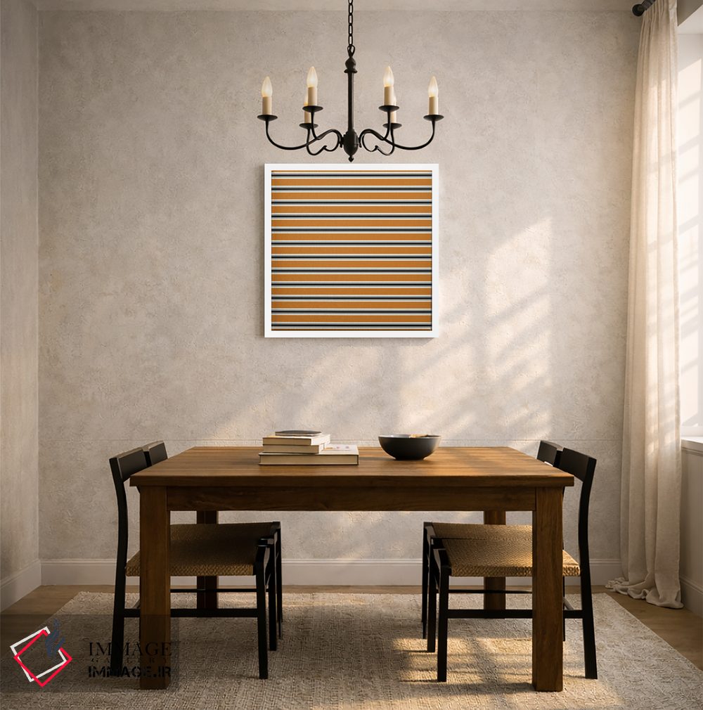 براساس پالت گرم اثر، قاب تیک گرم (چوبی) پیشنهاد اول است و مشکی مات (فریم متوسط) مکمل. برای سفارشهای پروژهای با ابعاد و قابهای اختصاصی با ایماژ در تماس باشید.