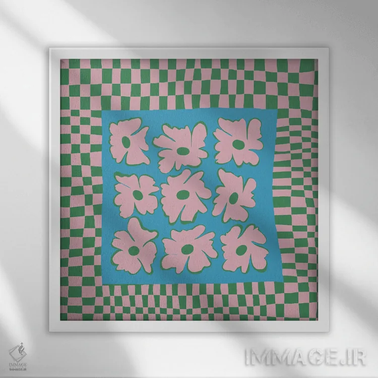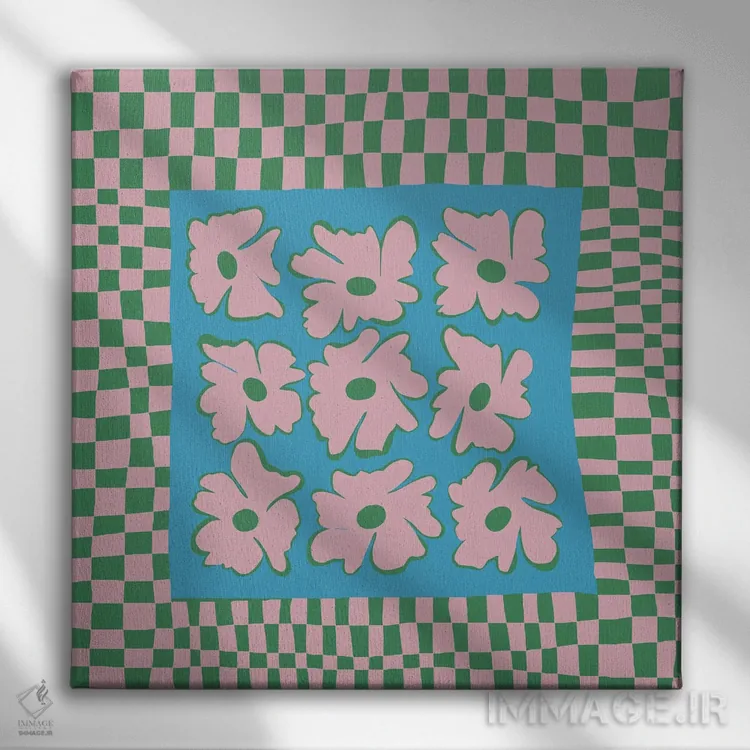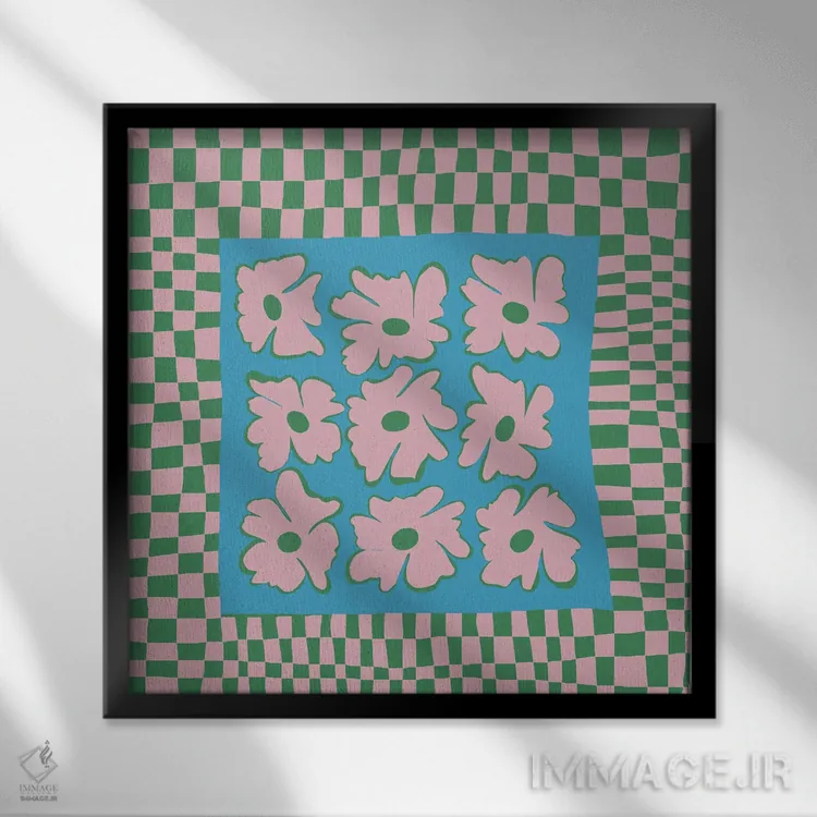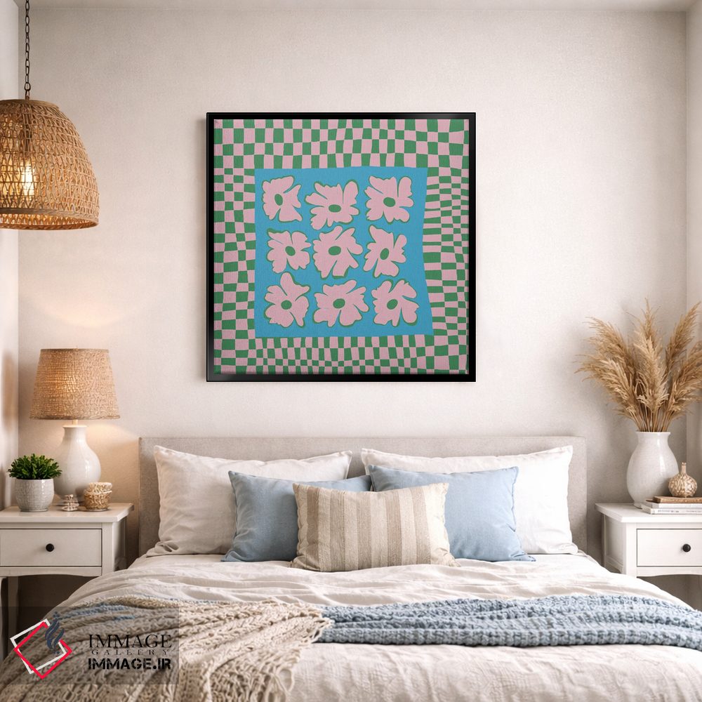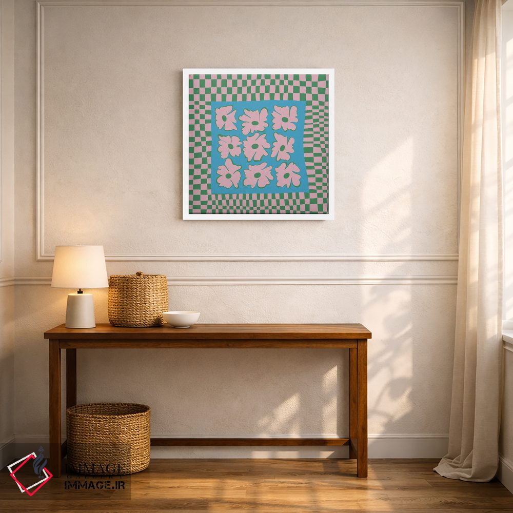 «"صفحه شطرنجی طبیعت با رنگهای ملایم"» اثرِ «استودیو هنری میهو» با حالوهوای تزئینیِ این اثر، فضا را روشن و مرتب میکند؛ مناسب نشیمنهای روشن و چیدمانهای مدرن.