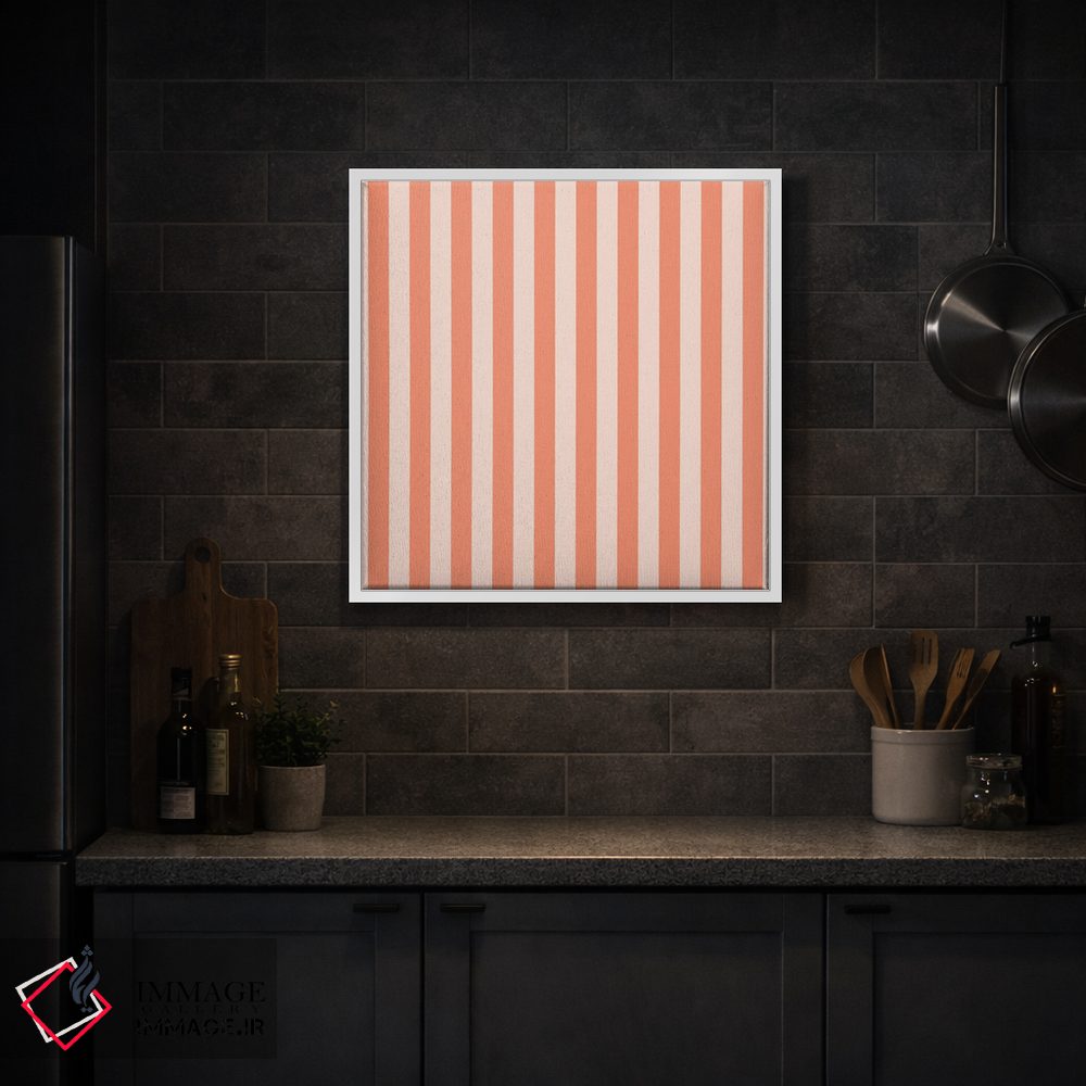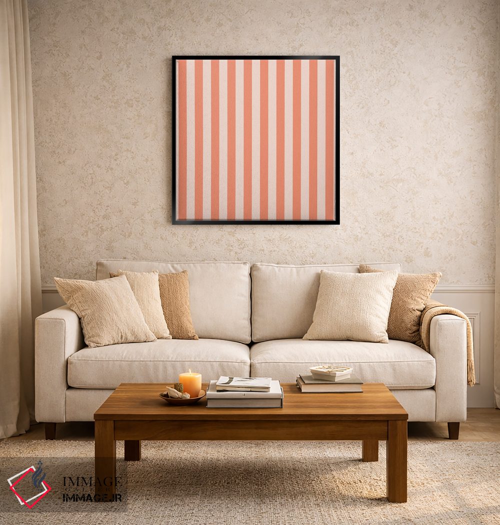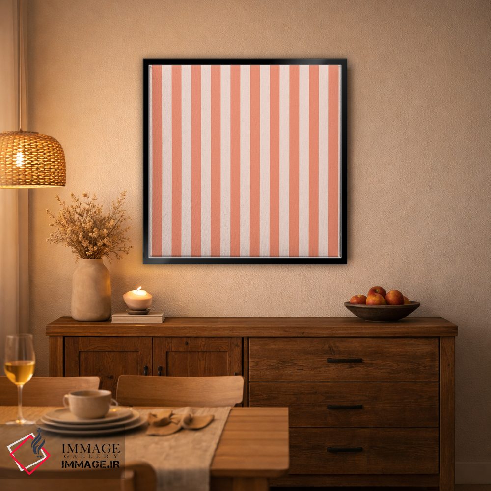 «"خطوط نارنجی بچگانه"» اثرِ «استودیو هنری میهو» یک قاب دکوراتیوِ گرم و دلنشین است؛ این اثر در اجرای پرداختِ هنری، فضا را نرمتر و صمیمیتر نشان میدهد.