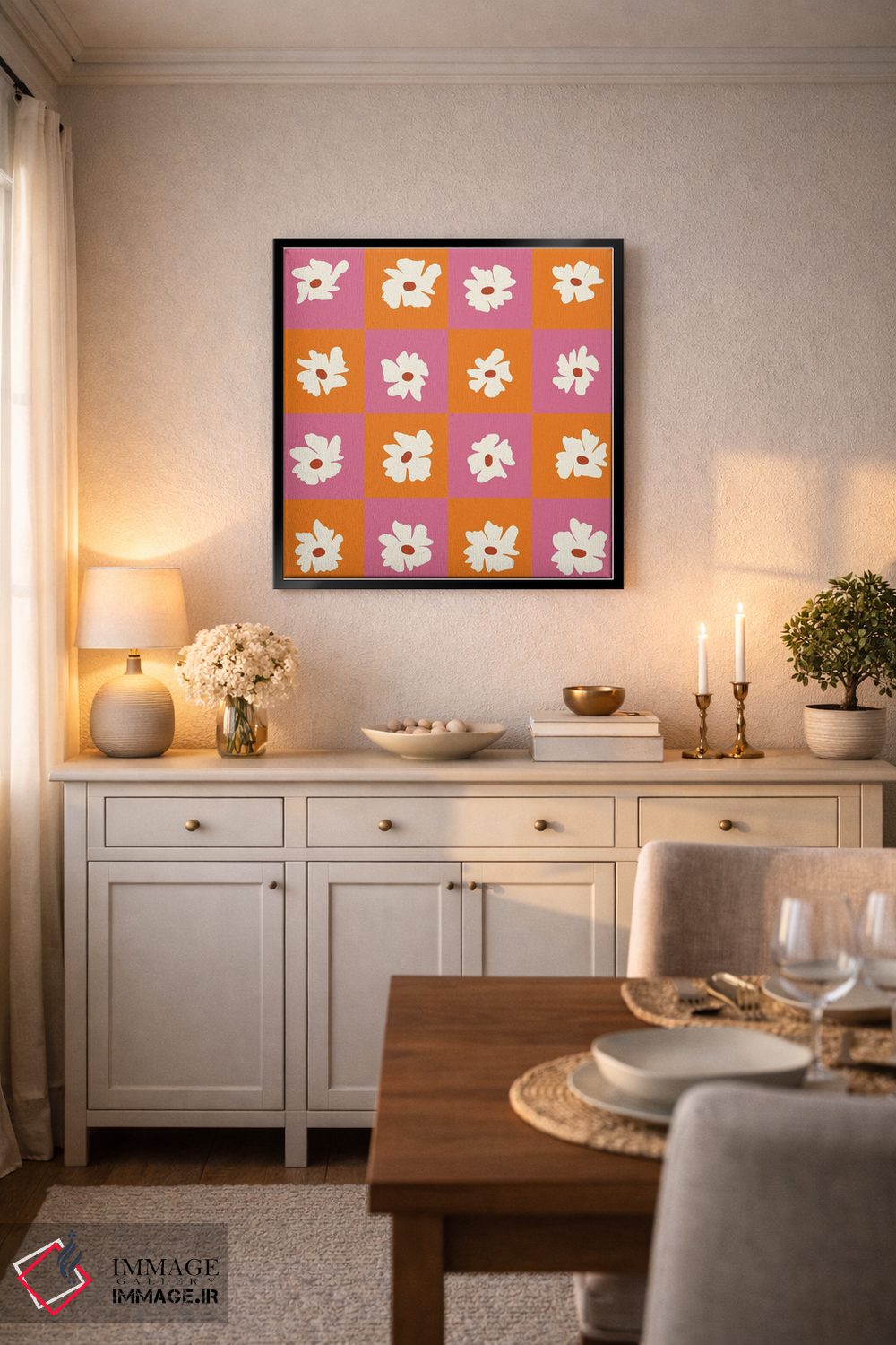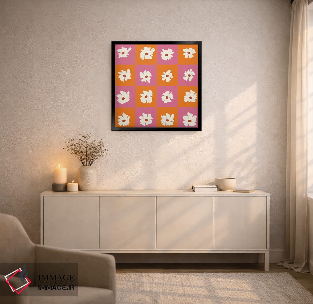 براساس پالت گرم اثر، قاب تیک گرم (چوبی) پیشنهاد اول است و مشکی مات (فریم متوسط) مکمل. برای سفارشهای پروژهای با ابعاد و قابهای اختصاصی با ایماژ در تماس باشید.