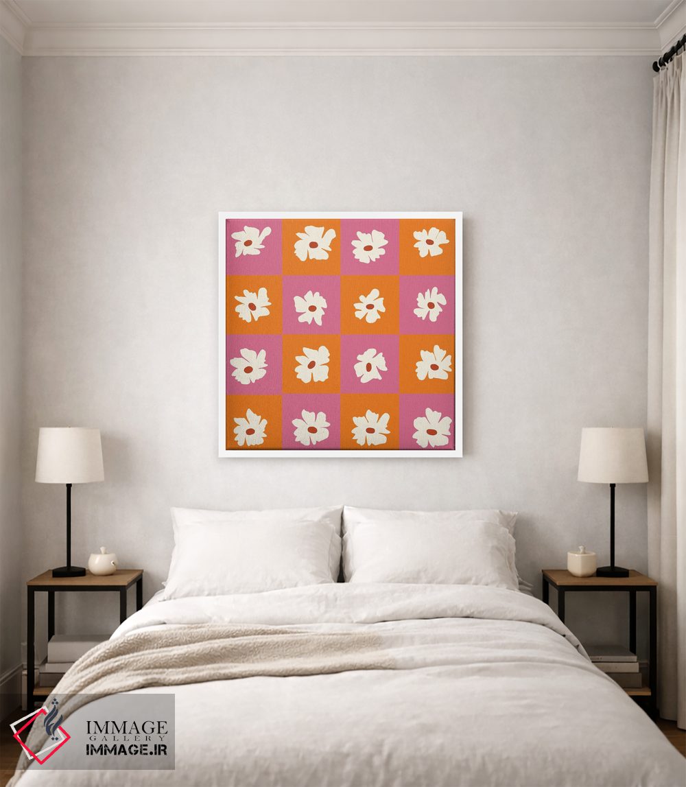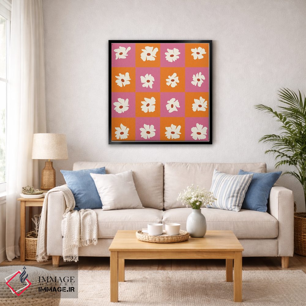 اگر دوست دارید هماهنگی کاملتر شود، رنگِ صورتی را در یک تابلو کوچک مکمل دوباره بیاورید تا هماهنگی بیشتر به چشم بیاید.