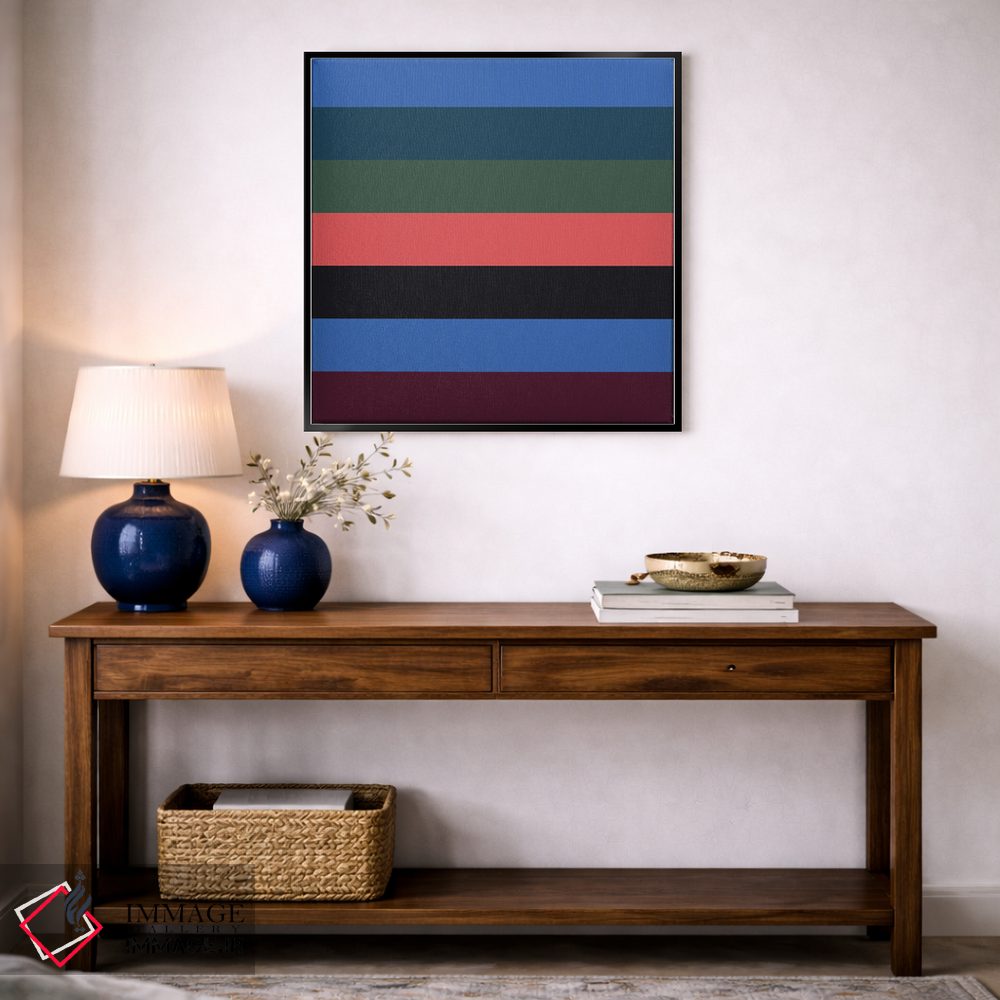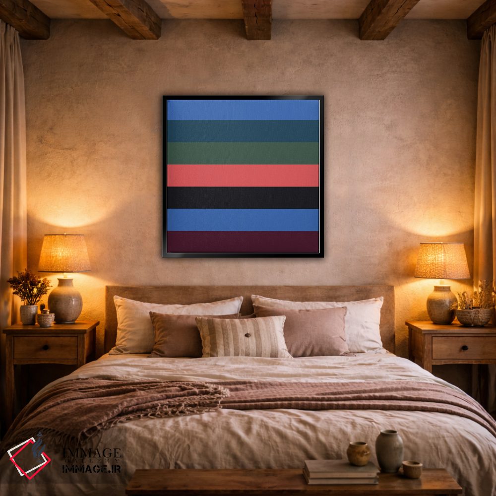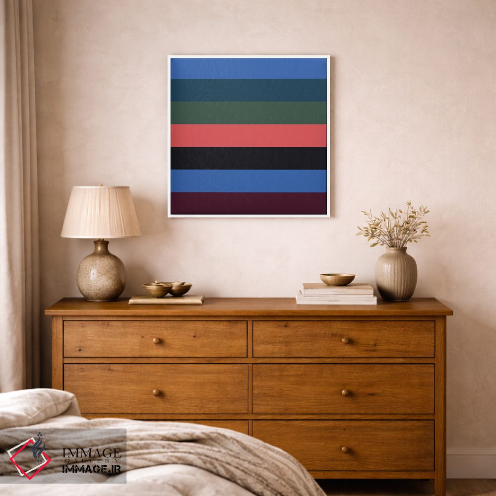 براساس پالت ترکیبی اثر، قاب تیک گرم (چوبی) پیشنهاد اول است و مشکی مات (فریم متوسط) مکمل. برای سفارشهای پروژهای با ابعاد و قابهای اختصاصی با ایماژ در تماس باشید.