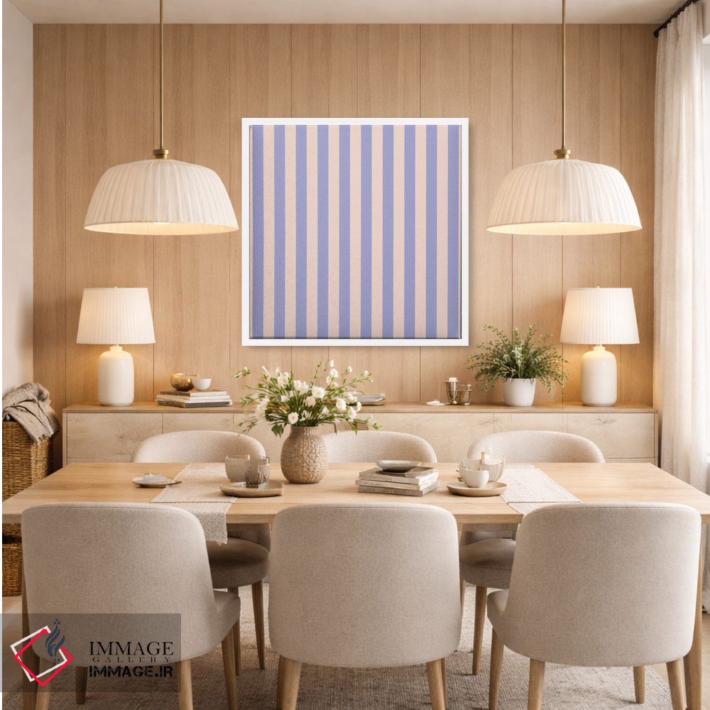 براساس پالت گرم اثر، قاب بلوط روشن (چوبی) پیشنهاد اول است و استخوانی ملایم مکمل. برای سفارشهای پروژهای با ابعاد و قابهای اختصاصی با ایماژ در تماس باشید.