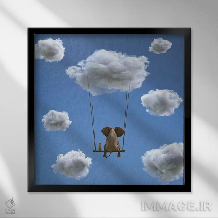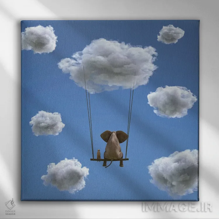 تابلو دکوراتیو فیل و سگ روی ابر در حال پروازند ۲ اثر مایک کیف