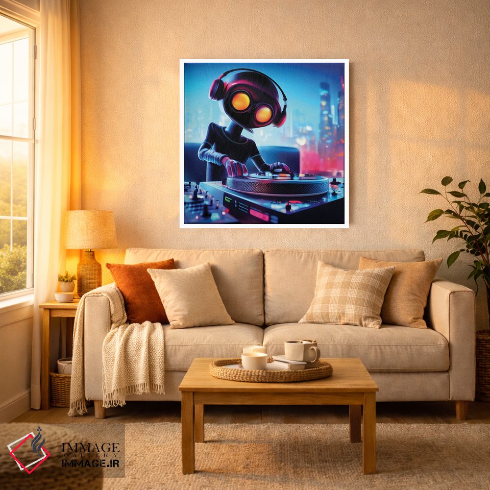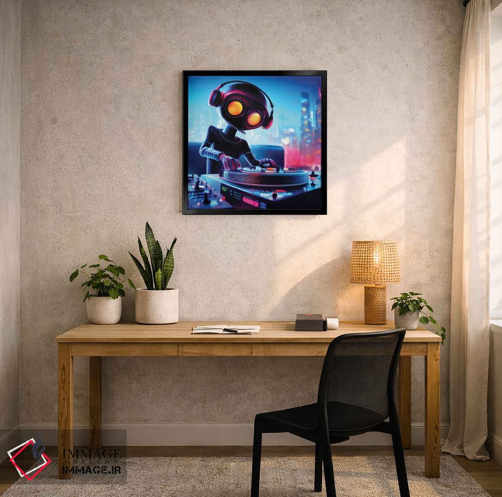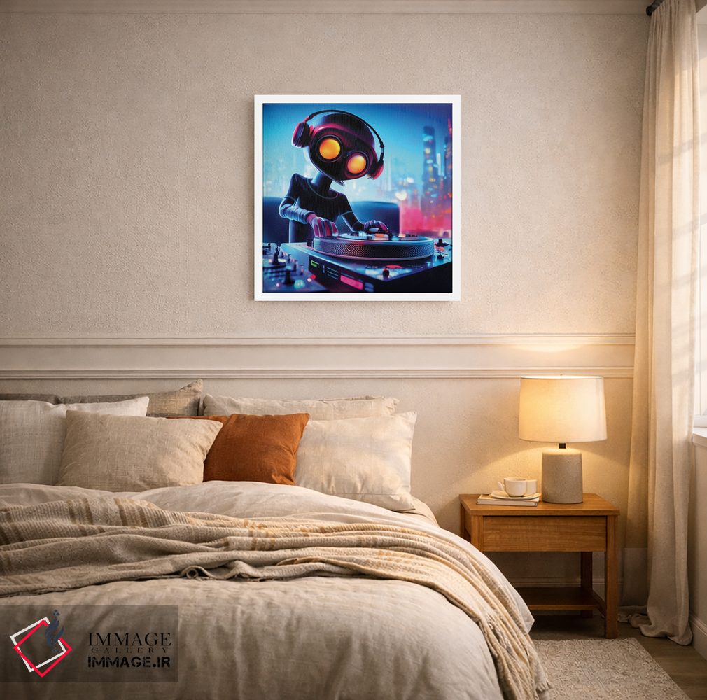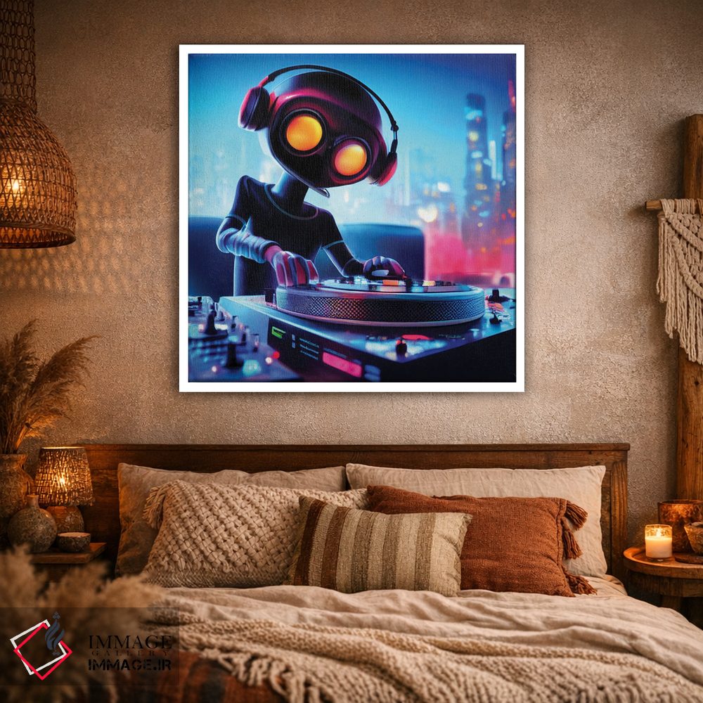 تابلو دکوراتیو دی جی ربات اثر مایک کیف - نمای روبه‌رو روی دیوار