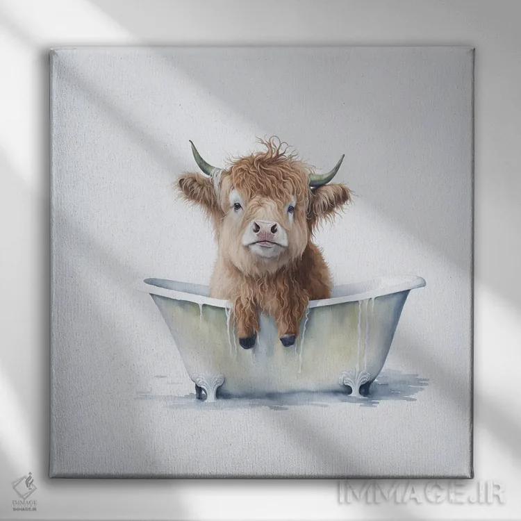 تابلو دکوراتیو شستن گاو هایلند ۳ اثر مایک کیف