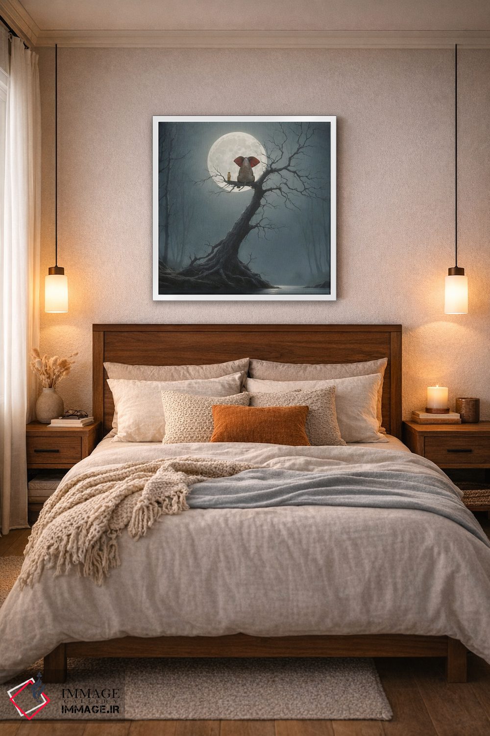 بوم گالری ایماژ نسخهی چیدماناتیوِ گالریپسند از یک اثر هنری است؛ روی کنواس بدون اسید با بافت ظریف و یکنواخت با فرآیند چاپ حرفهای جیکلی (Giclée) و کنترل دقیق تونها با سیستم رنگ Epson UltraChrome HDR برای نیمسایههای نرمتر و سایههای جزئیتر، خروجی، عمق رنگ و پرداختی است که «با چشم» دیده میشود. کلافکشی مرتب و یراق نصب استاندارد، تجربهی نصب را ساده میکند.