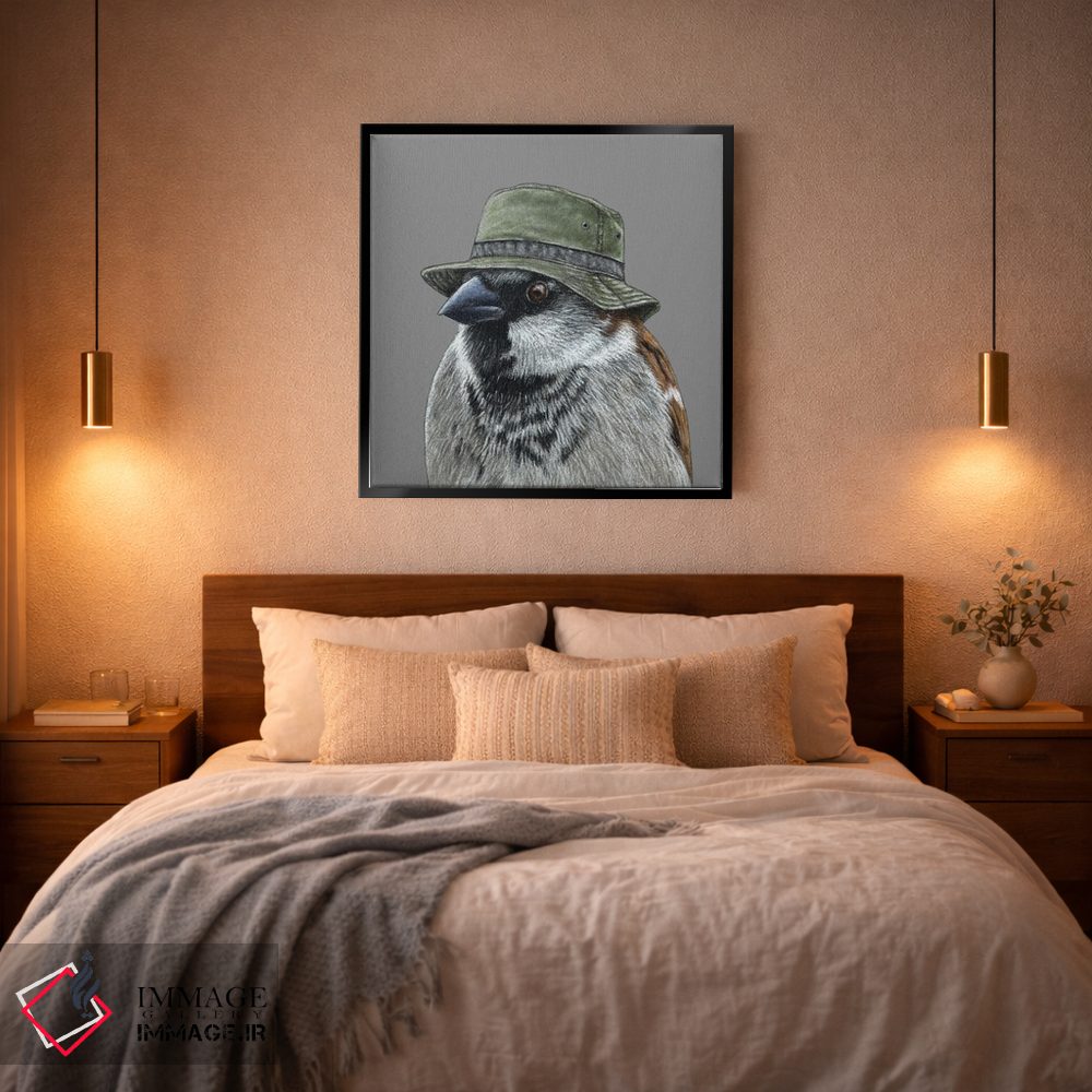 «گنجشک درختی ۵» اثرِ «میخائیل ودرنیکوف» از آن کارهاییست که مثل یک امضای بامزه اما متین عمل میکند؛ برای دکورهای مدرن و مینیمال انتخاب خوبیست. برای دیوار گالریوار هم گزینهٔ خوبیست.