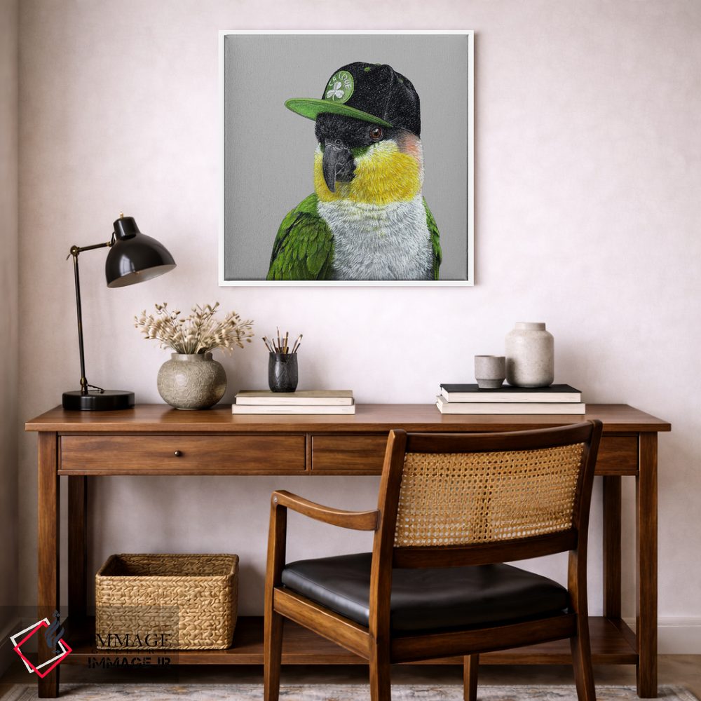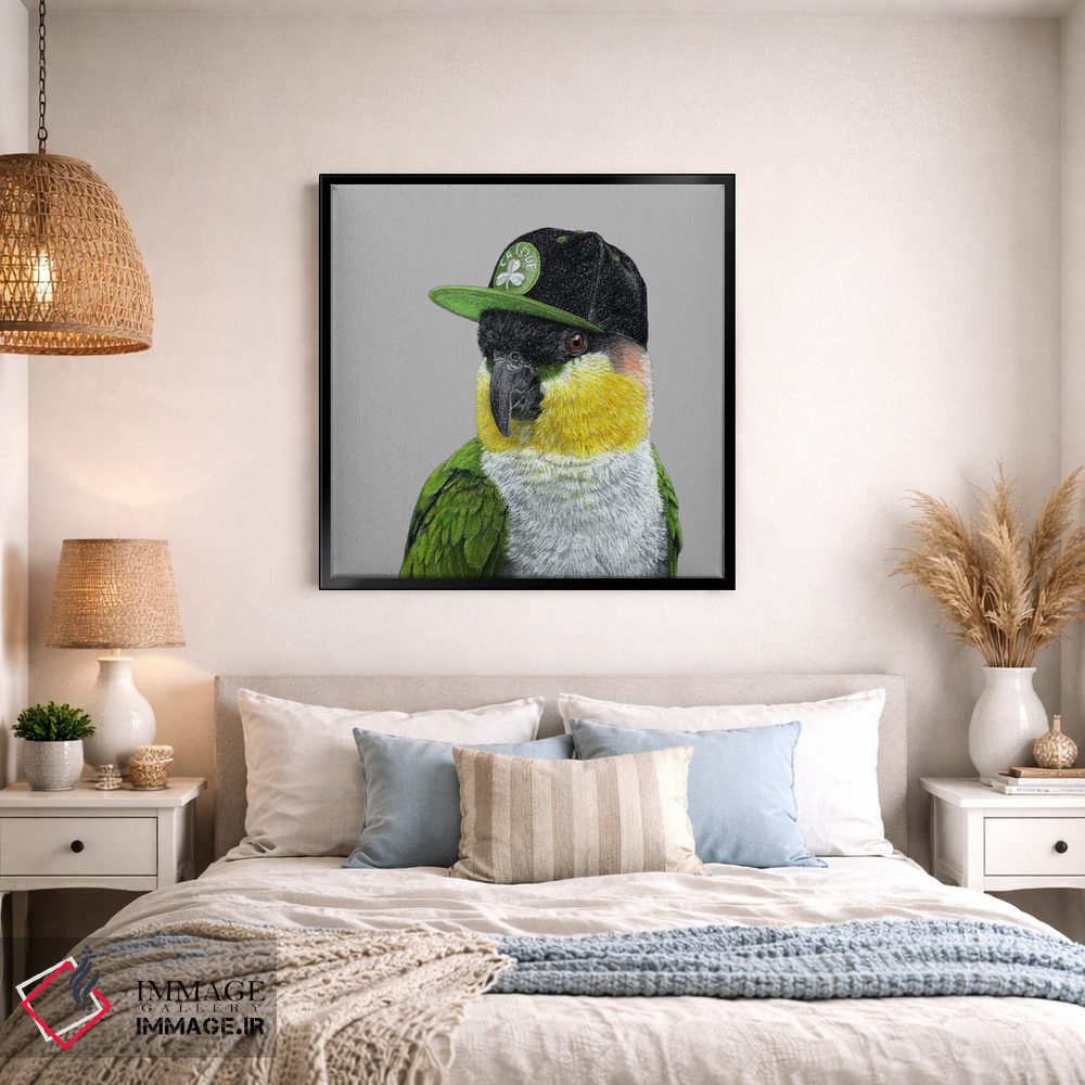 اگر میخواهید دیوار کمی سرزندگیِ محترمانه داشته باشد، «"طوطی سرسیاه"» اثرِ «میخائیل ودرنیکوف» فضا را صمیمیتر و دعوتکنندهتر نشان میدهد، برای دیوار کنار میز کار گزینهٔ مناسبیست. در کنار گیاهان و نور طبیعی، جذابتر هم میشود.