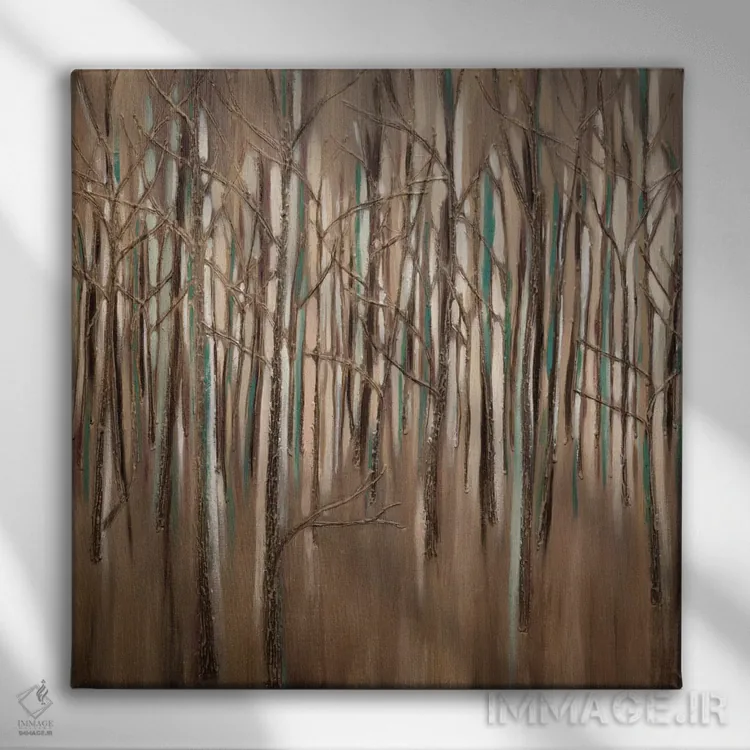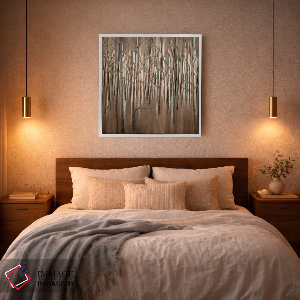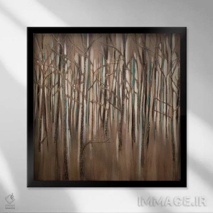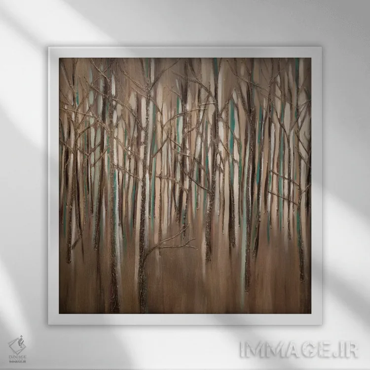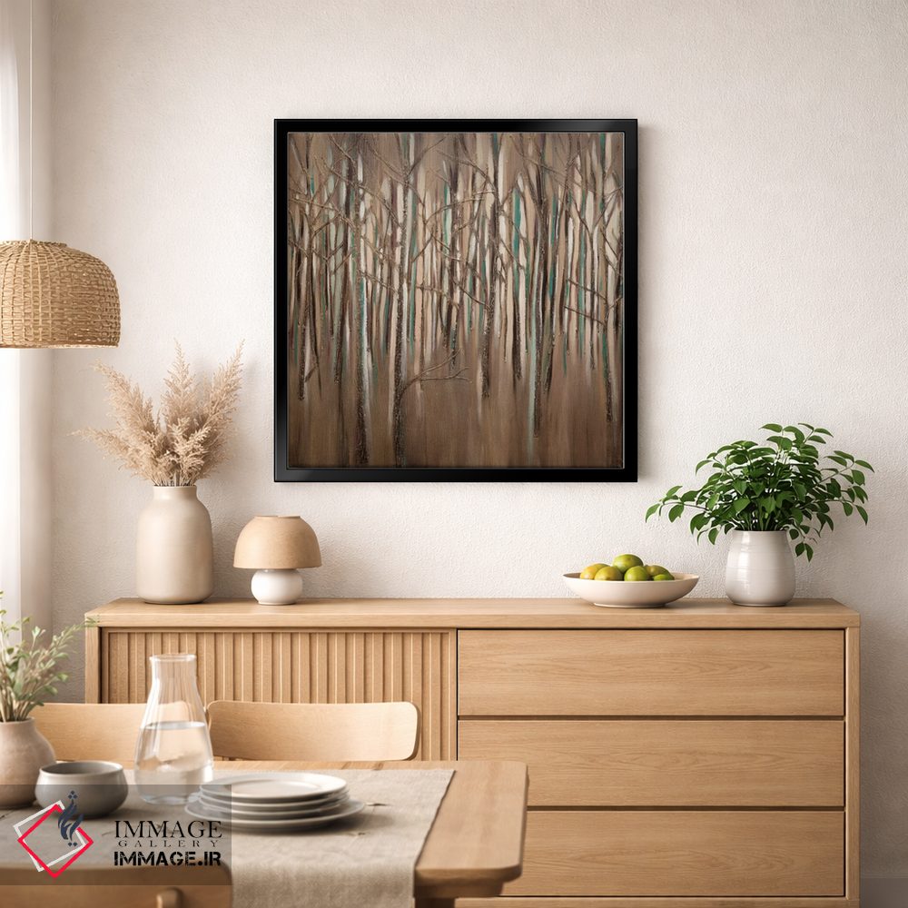 براساس پالت گرم اثر، قاب بلوط روشن (چوبی) پیشنهاد اول است و استخوانی ملایم مکمل. برای سفارشهای پروژهای با ابعاد و قابهای اختصاصی با ایماژ در تماس باشید.