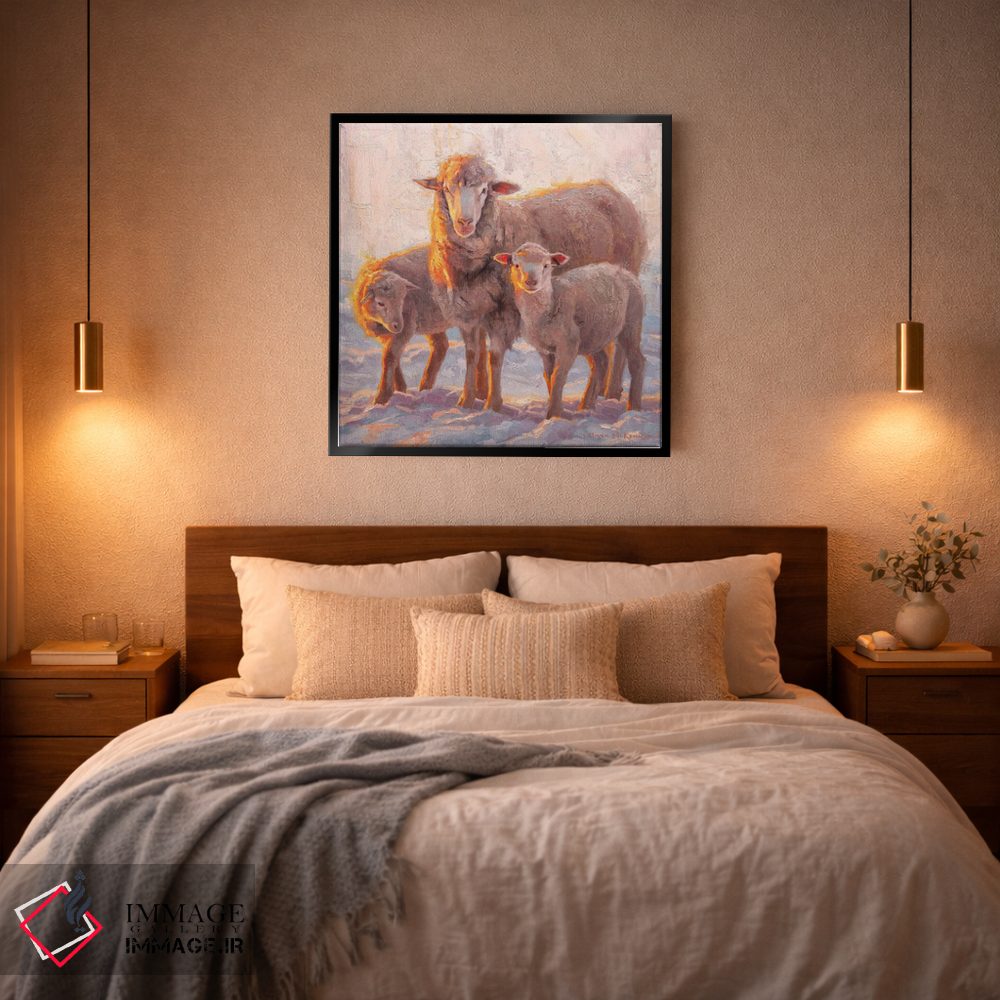 تابلو دکوراتیو غروب خورشید اثر مارک مک کنا - نمای روبه‌رو روی دیوار