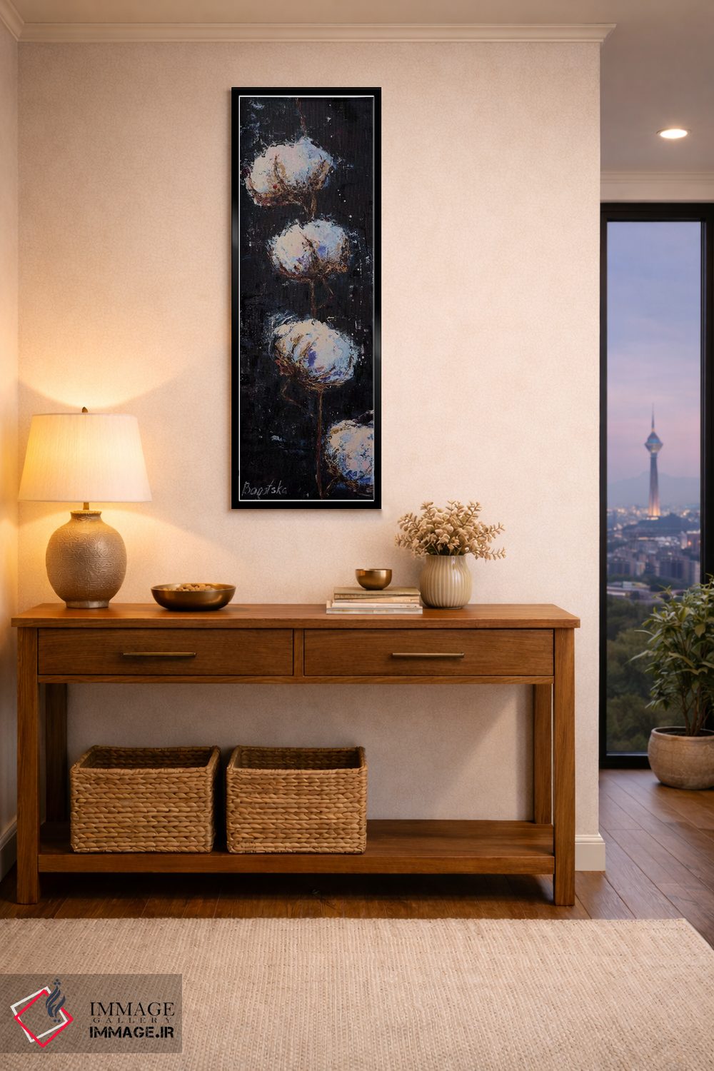اگر به دکورهای طبیعی علاقه دارید، «لطافت» اثرِ «اولنا بوگاتسکا» فضا را نرمتر و مهماننوازتر میکند، برای فضاهای بوهمی گزینهٔ مناسبیست. حضورش آرام است، اما بیاثر نیست.