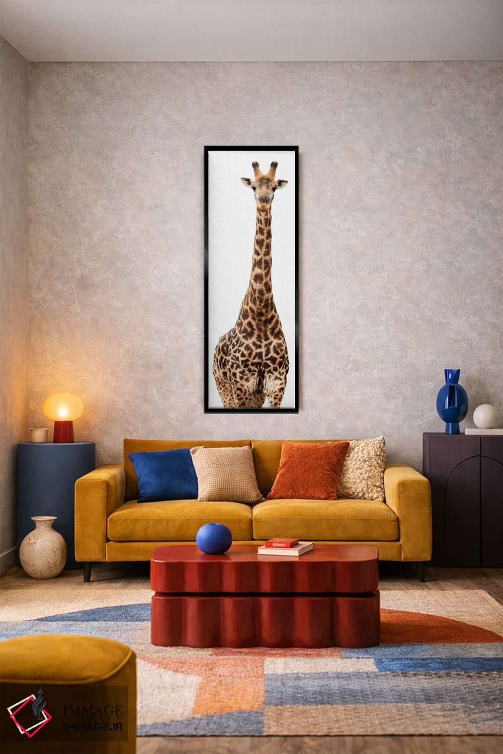 برای دیوارهای ساده، «زرافه نسخه سفید III» اثرِ «فیلیپ هوگونار» گرما و شخصیت به فضا اضافه میکند؛ برای دیوار کنار میز کار انتخابی خوشسلیقه است. به دیوار، قصه میدهد—اما قصهای آرام و شیک.