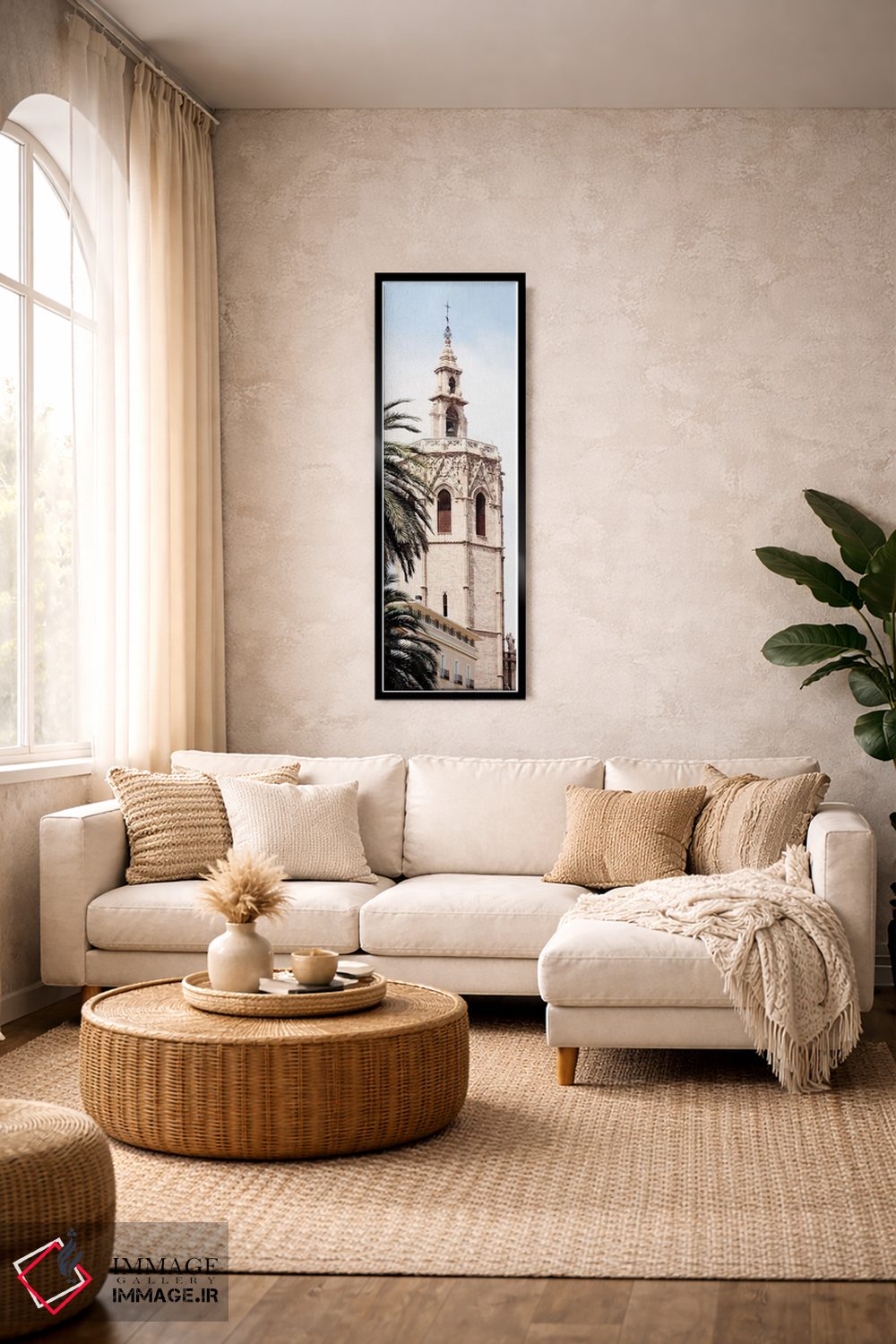 بوم گالری ایماژ نسخهی چیدماناتیوِ باکیفیت از یک اثر هنری است؛ روی کنواس سفیدِ یکدست و بدون اسید با چاپ هنریِ استاندارد جیکلی برای بازآفرینی حرفهای و جوهرهای آرشیوی Epson UltraChrome HDR برای بازنمایی بهتر تونهای حساس، روی دیوار، کار یکدستتر و خوشکیفیتتر دیده میشود. اسمبل تمیز و آمادهی نصب؛ کشیدگی استاندارد روی کلاف و یراق مناسب.