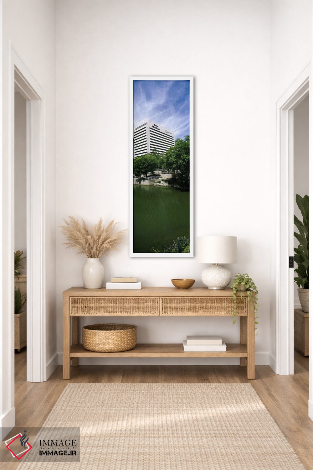 در این اثر، «ساختمان در کنار آب، ساختمان کوئست، اوماها، نبراسکا، ایالات متحده آمریکا» اثرِ «پانورامیک ایمجز (استودیو عکاسی عریض)» فضا را روشنتر و زندهتر نشان میدهد؛ برای فضاهایی با نور طبیعی پیشنهاد میشود. روی دیوار، طبیعی و متعادل دیده میشود—بیاغراق و درست.